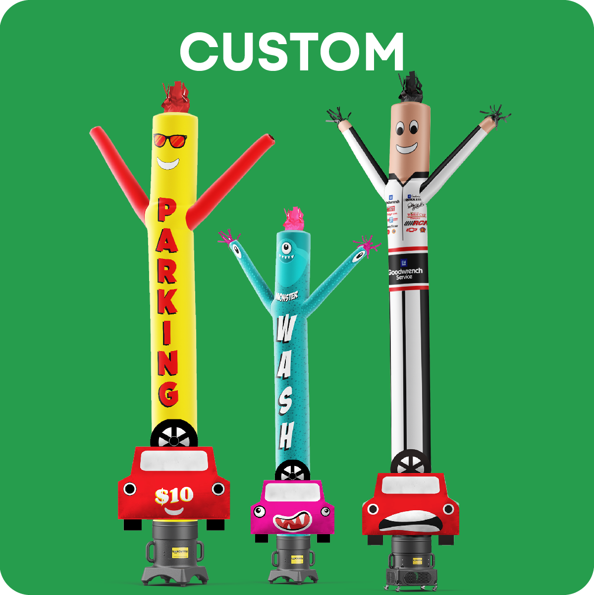 The most common names for inflatable wavy arm guys are: Air Dancers, inflatable tube man, funny waving inflatable tube man, and inflatable dancing man.