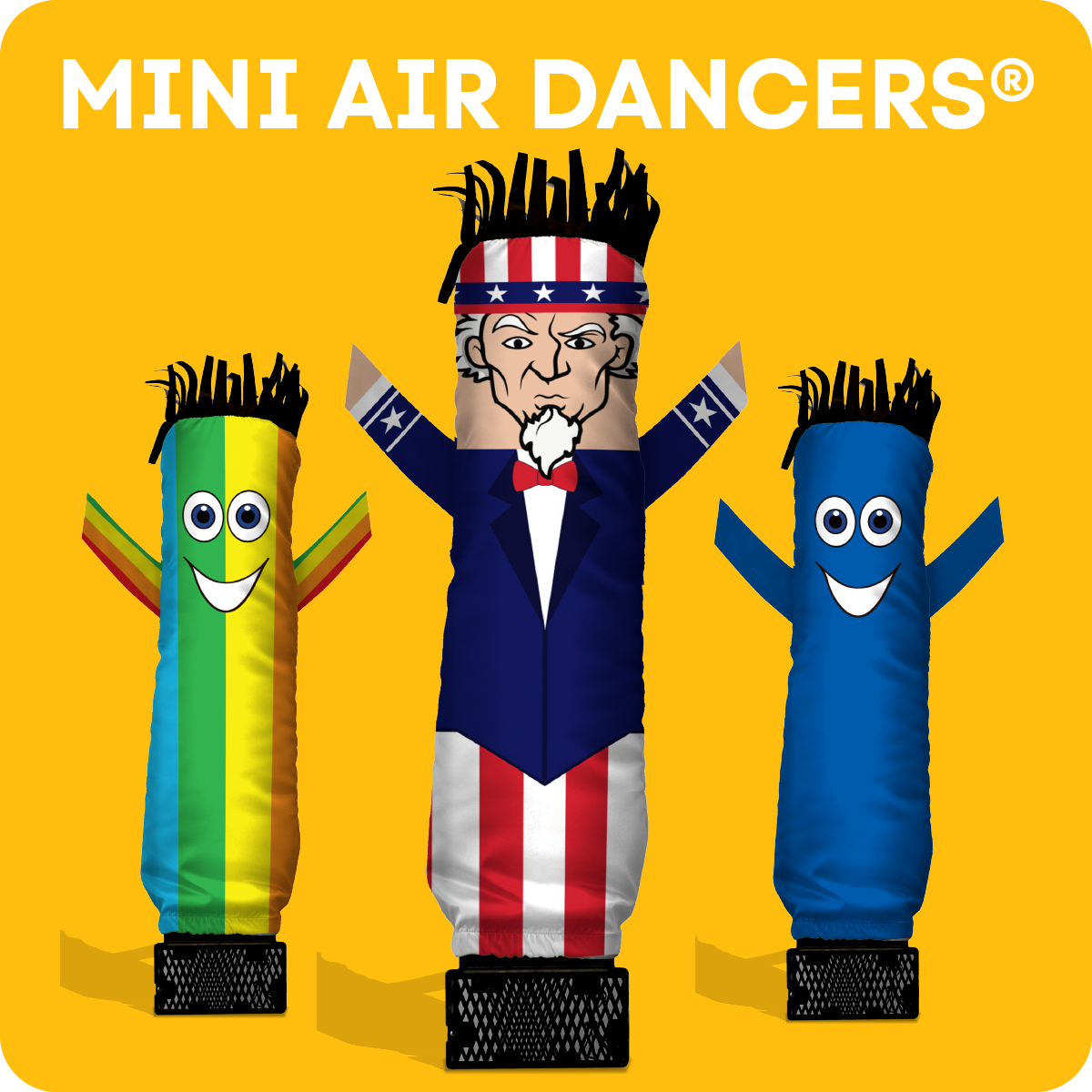 The purpose of an Air Dancer is to attract attention with its dynamic flailing dancing motion. They are often used to promote retail businesses or events.
