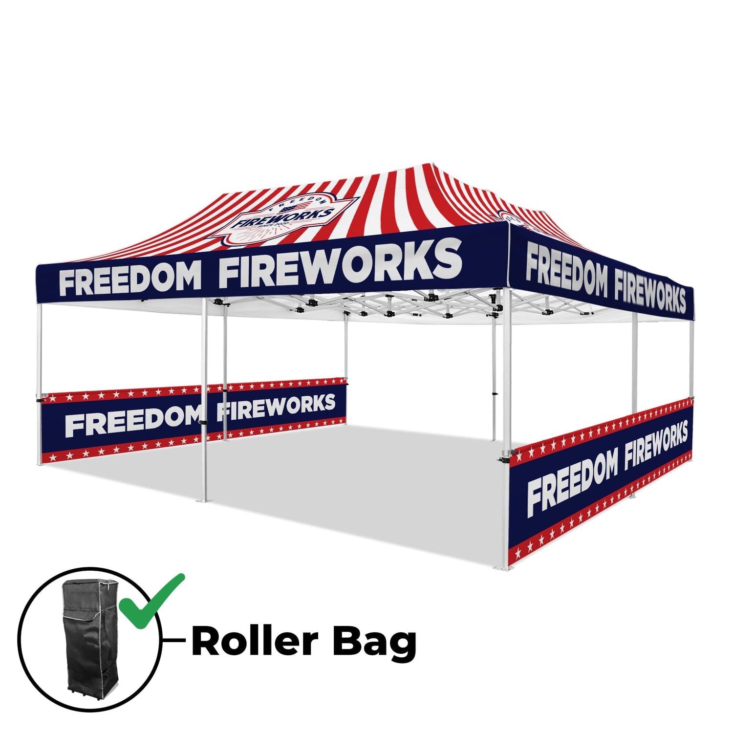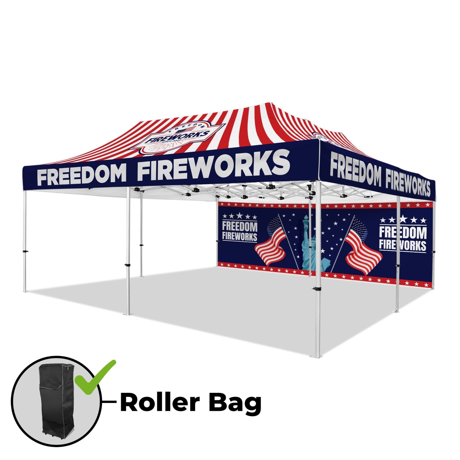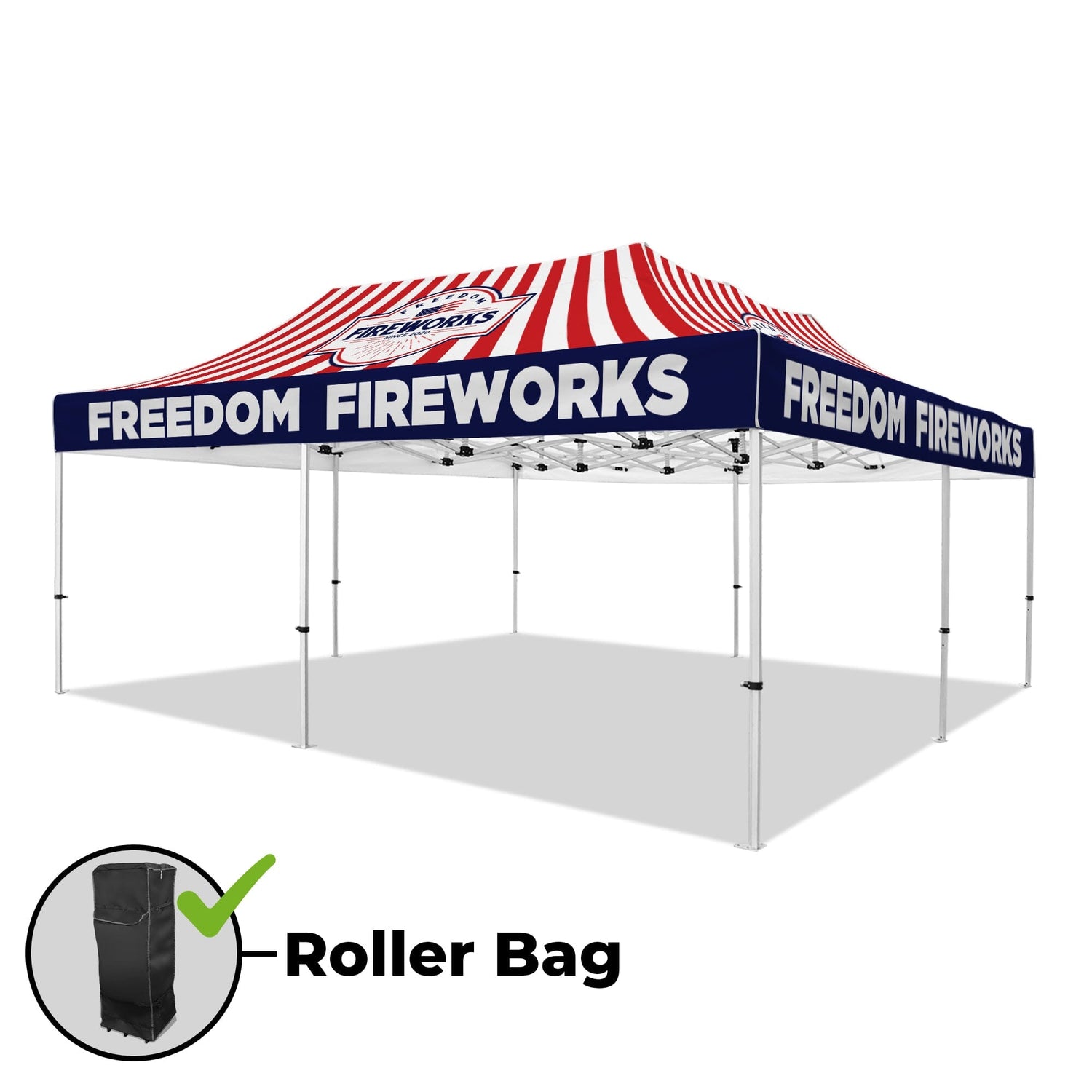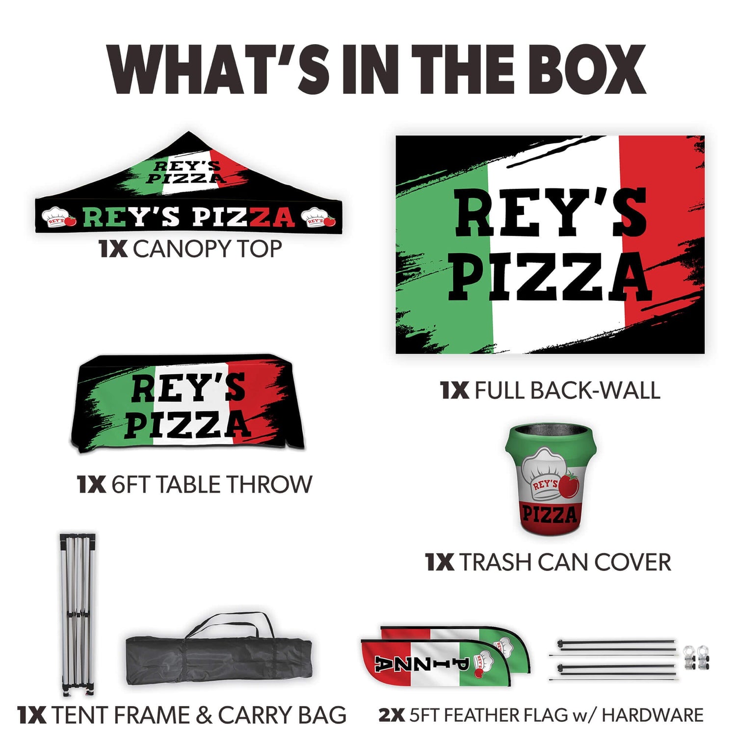 Canopy tents are not only mobile shelters but have now become a fully customizable advertising solution. With the ability to have your company or brand’s logo and messaging printed onto all surfaces of the tent package you choose, as well as a host of additional complimentary custom products like table covers and feather flags, you will have the ability to shelter your team and boldly display your branding and messaging in a clean and professional manner. Select the package of your choice above to get started.
