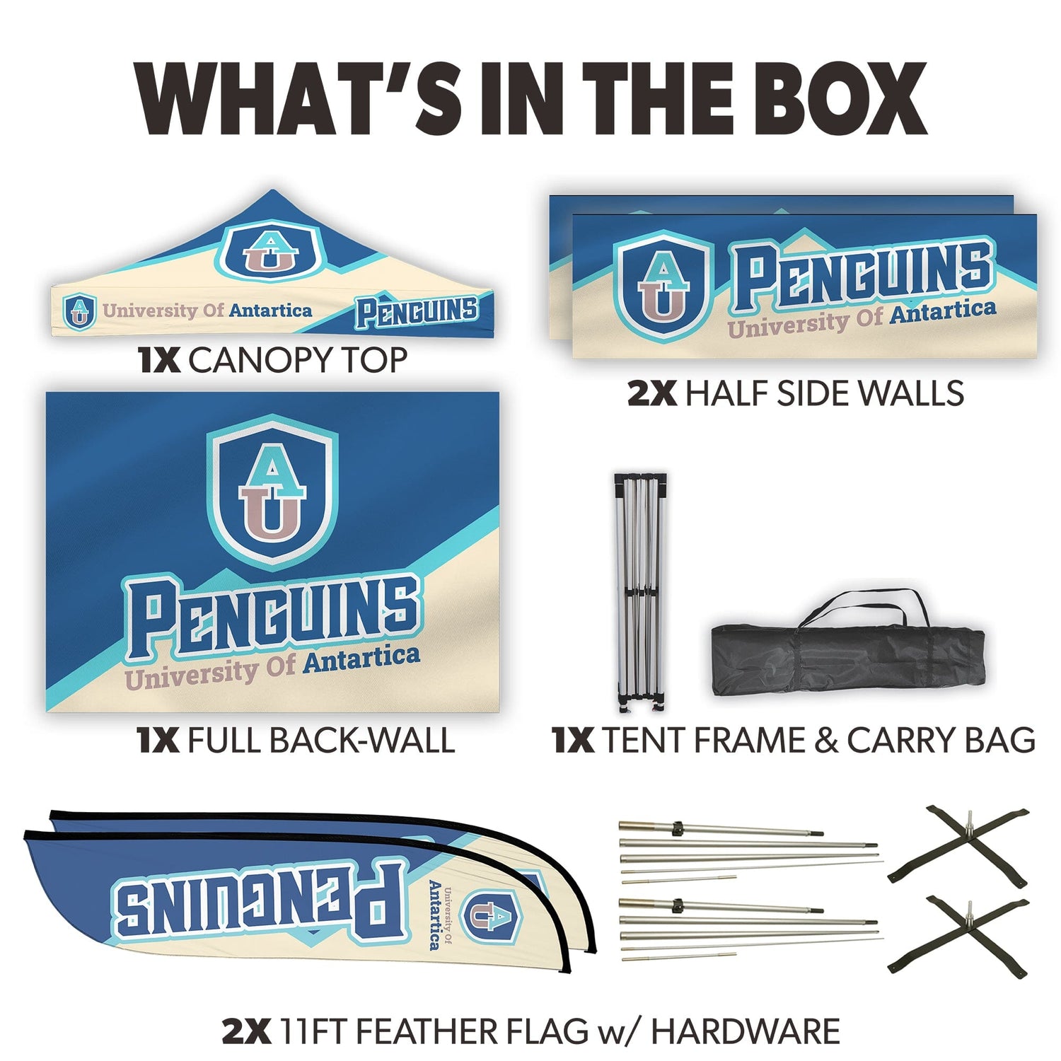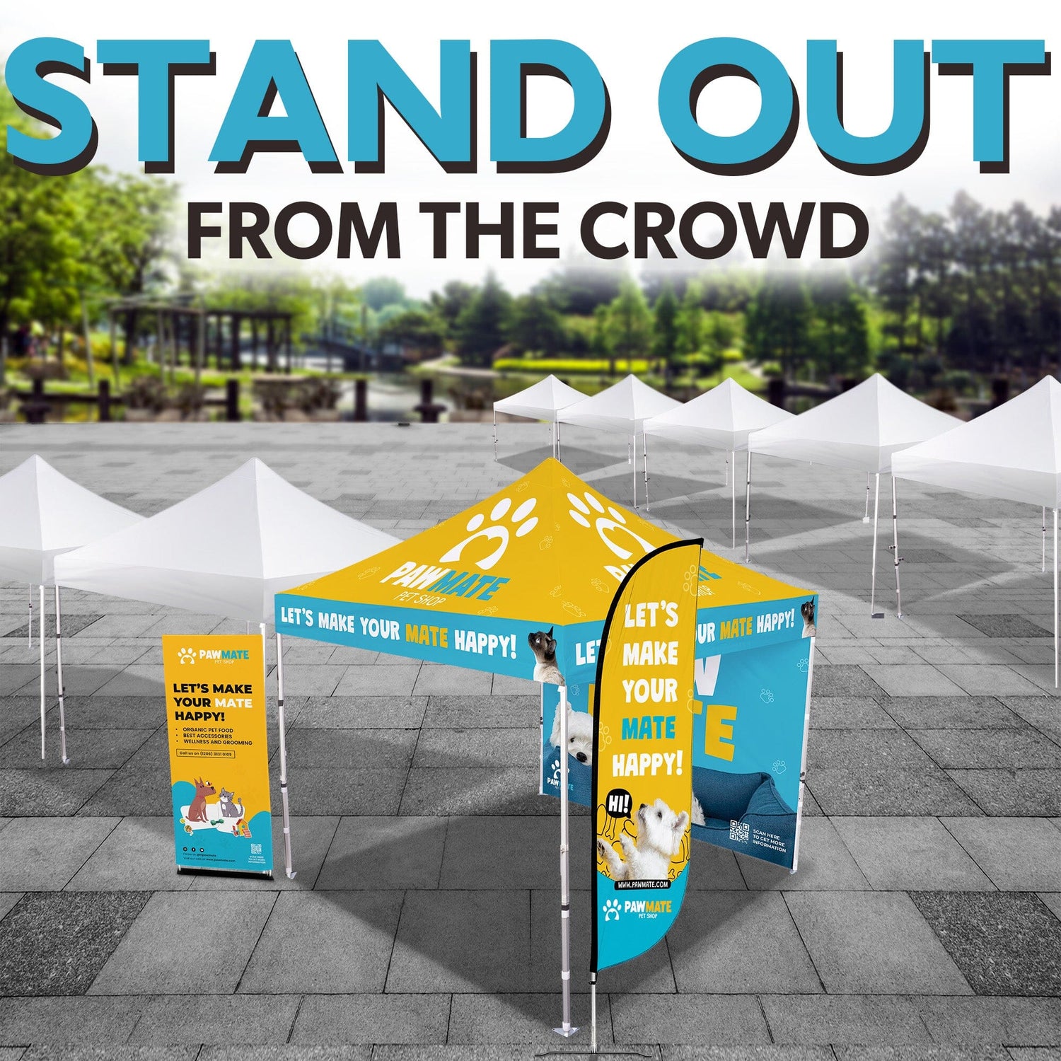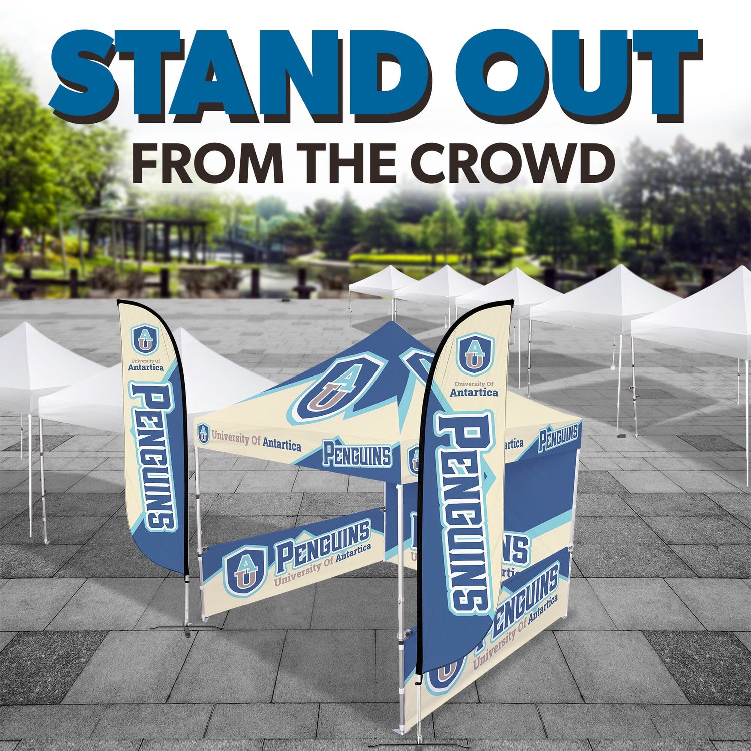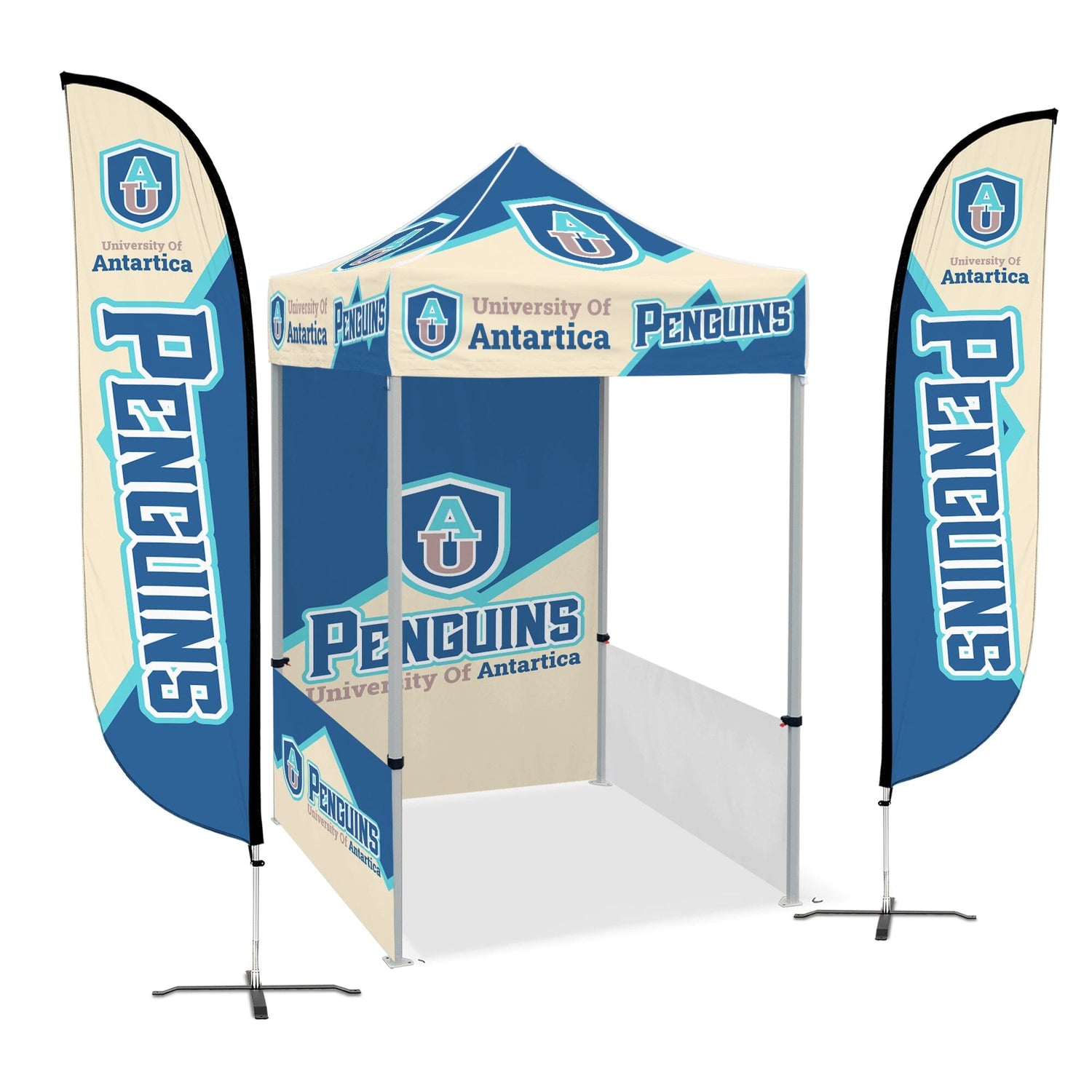 Custom Canopy Tent with Back Wall, Feather Flag & Banner Stand