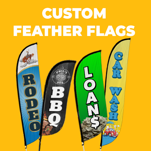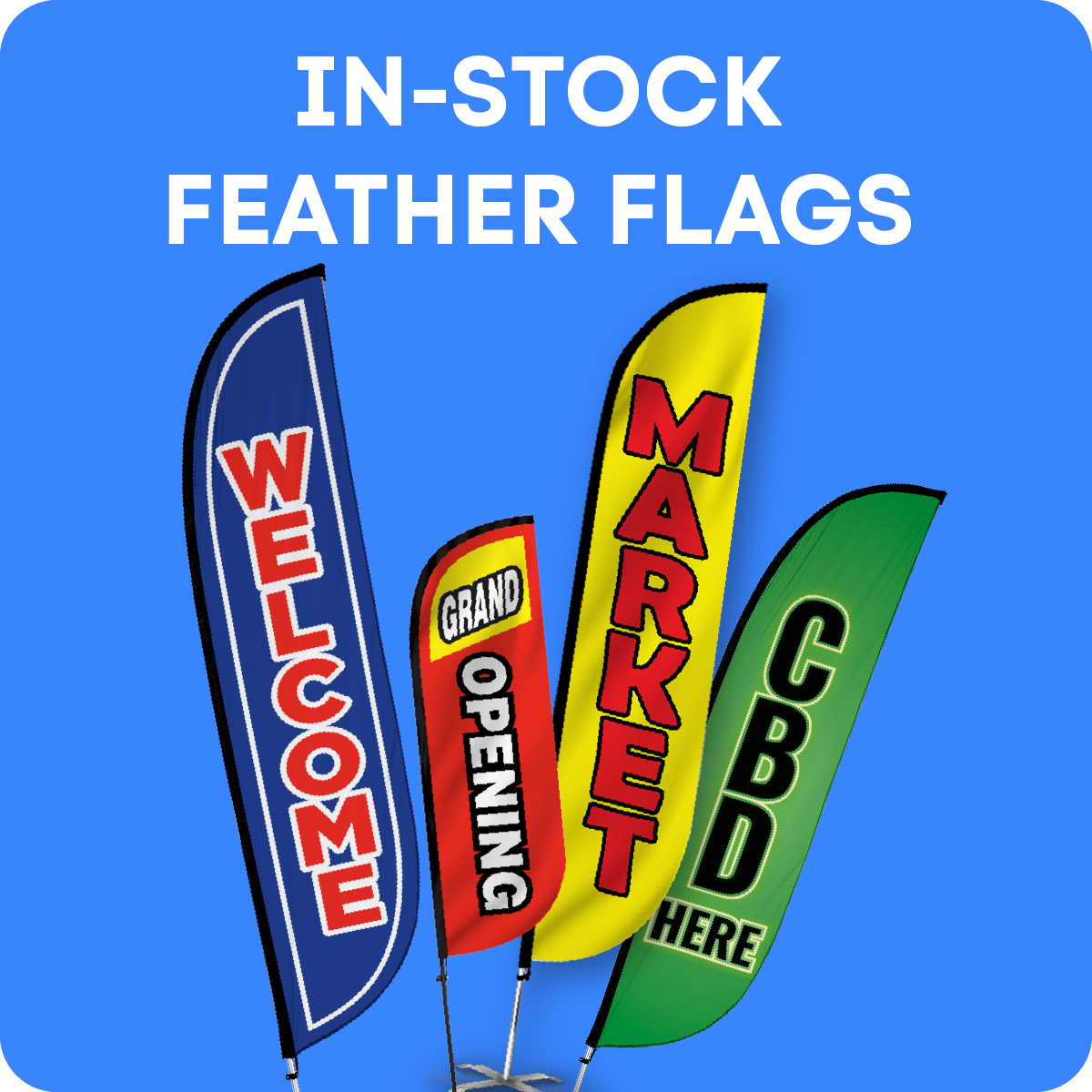 Feather flags, also known as feather banners or sail flags, are advertising flags that are typically used to promote products, services, or events. They are tall, vertical flags that have a curved or angled top and a straight bottom. They are designed to catch the attention of passersby with their fluttering motion in the wind, and they are often placed in high-traffic areas such as sidewalks, parking lots, and trade show booths. Feather flags are often used by businesses, organizations, and individuals to attract customers, promote sales or specials, or direct people to a specific location or event. They can also be customized with text, graphics, or logos to enhance branding and increase visibility.