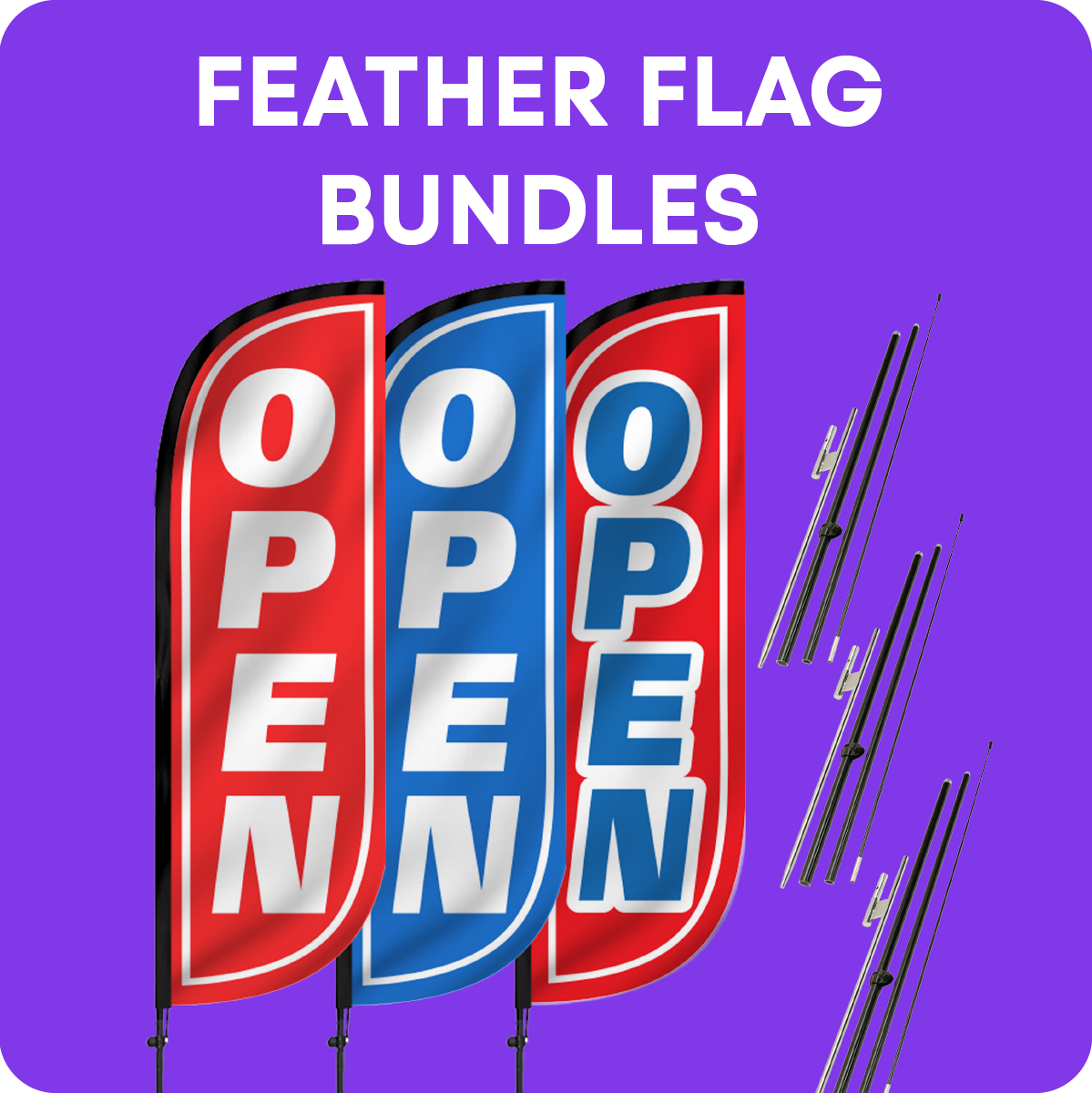 Our feather flags will get your business noticed by everyone passing by! We have over 200 designs of feather flag banners and hardware available in both small and large sizes. We also provide custom feather flags. You can upload your own designs or work with our in-house designers to create the exact look you want for free. Feather flags are the most effective and economically efficient way to advertise your retail business or large event.