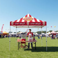 Make your brand impossible to miss with a Custom 10x10 Canopy Tent from LookOurWay - built for durability, portability, and head-turning impact. Each tent features a fully customizable canopy printed in vibrant, full-color dye sublimation on thick, water-resistant 600D Oxford fabric. Certified fire-resistant (CPAI-84 & NFPA-701) and engineered for long-term use, this setup is perfect for festivals, trade shows, markets, and outdoor events of all kinds.