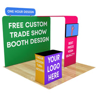The 10ft FastZip™ Trade Show Booth by LookOurWay is guaranteed to turn some heads and attract the attention that you're brand deserves. Pick and choose the accessories that matter to you, and let our design team take care of the rest. Each Fastzip™ Tension Fabric Booth Component features a lightweight aluminum frame that is covered in a premium polyester fabric. All of the customized pieces are printed in full-color using our industry leading dye sublimation process and then hand fit and finished to ensure a perfect fit on every order.