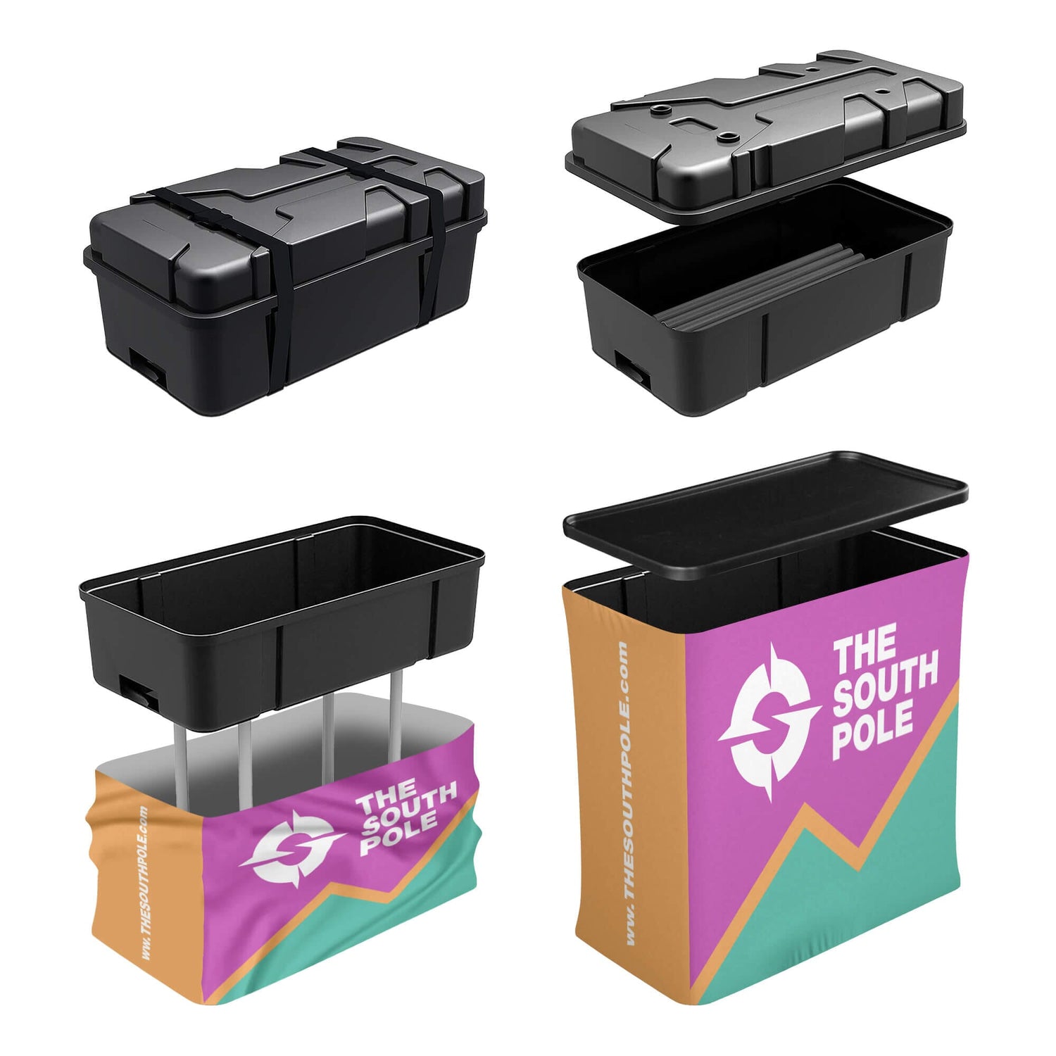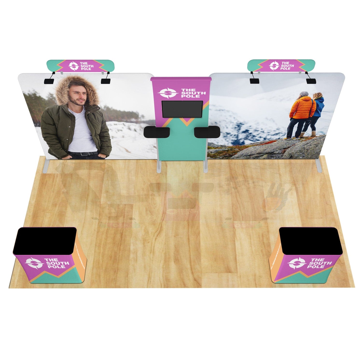 Elevate Your Trade Show Game with LookOurWay! Introducing the 20ft Curved Media Wall Trade Show Booth Package by LookOurWay—your ultimate solution for making a lasting impression at your next expo or trade show. This lightweight, portable, and easy-to-set-up booth features a stunning 3-piece modular back wall with a sleek curved media/TV stand right in the center. It's designed to captivate and engage your audience from every angle! But that's not all! Enhance your setup with optional hard case podiums that double as travel cases, offering both functionality and style. These podiums are the true stars of the show, providing secure storage for your supplies while ensuring effortless transportation thanks to integrated wheels and handles. Add LED lights and tension fabric headers to illuminate your brand's message and make it shine even brighter. Whether you're showcasing new products or connecting with potential clients, this booth package is perfect for creating an unforgettable experience. Ready to transform your trade show presence? Let LookOurWay help you stand out in style!