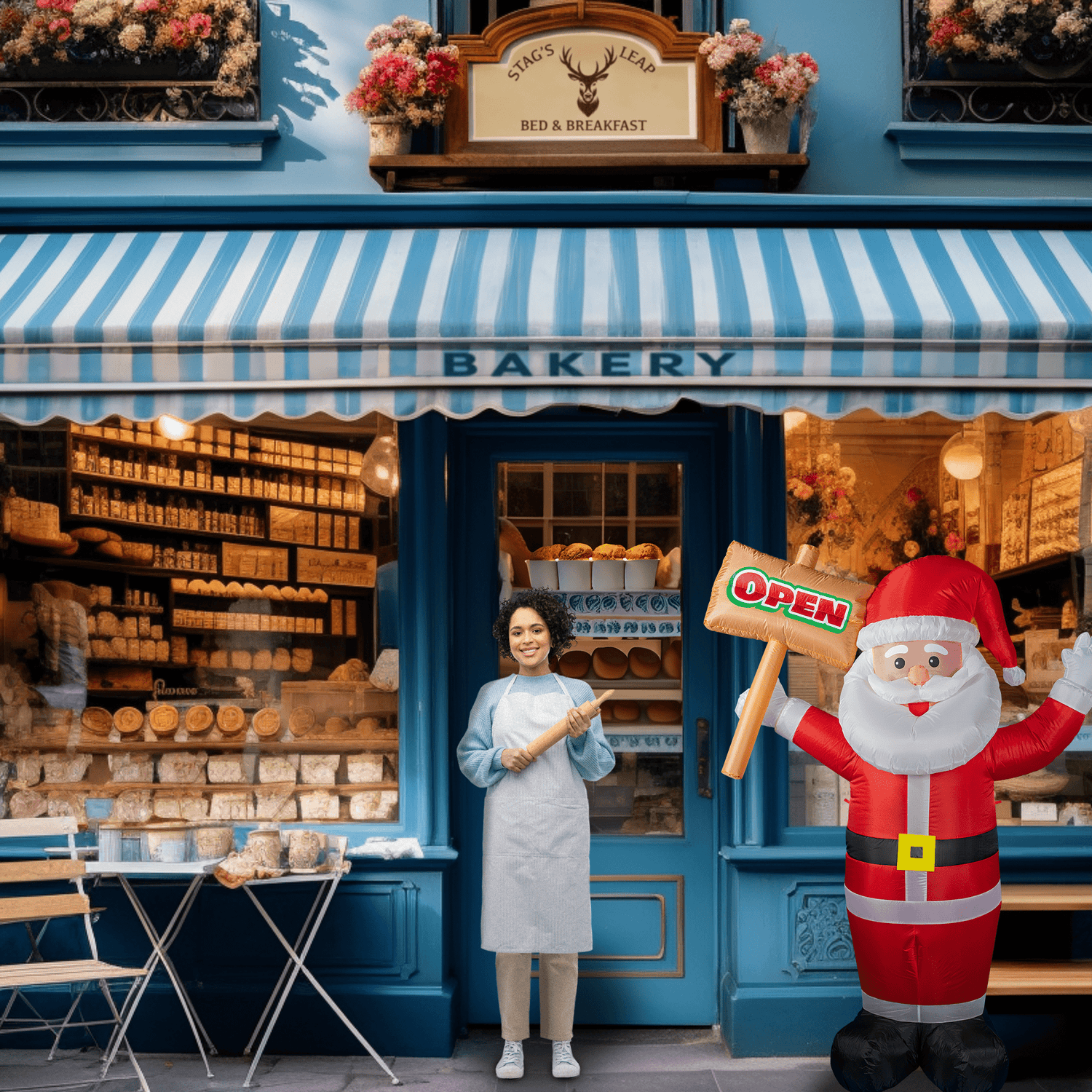 6ft Santa Lawn Inflatable with "Open" Sign