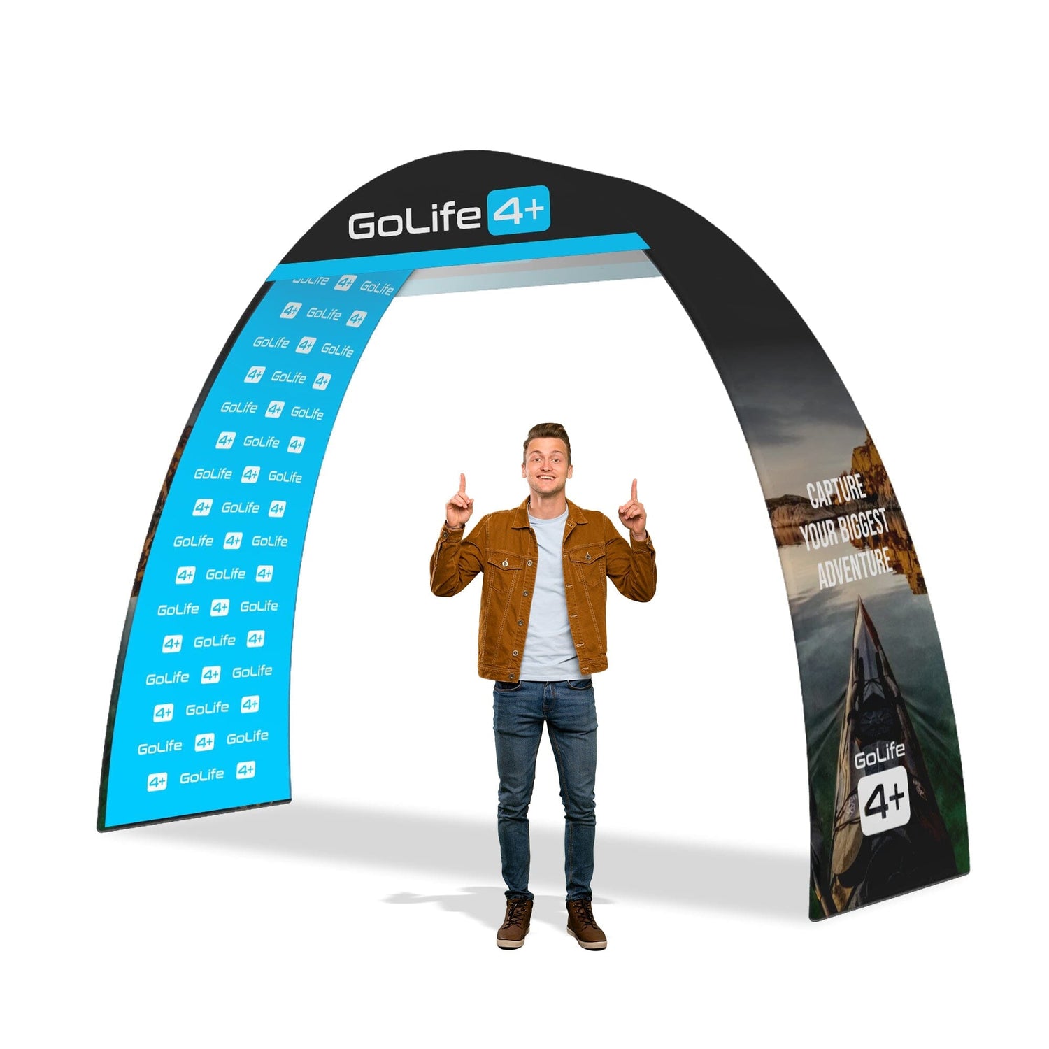 The FastZip™ Round Trade Show Archway by LookOurWay is a bold and inviting way to turn heads and attract attention to your trade show booth. This sleek freestanding arch is constructed of durable, yet lightweight aluminum poles that quickly snap together, while the FastZip™ fabric display quickly zips around the frames edges. The archway graphics are printed in vibrant full color using premium fabrics and our industry leading Dye-Sublimation process. Each arch is then hand finished to ensure perfect fitment on every order.