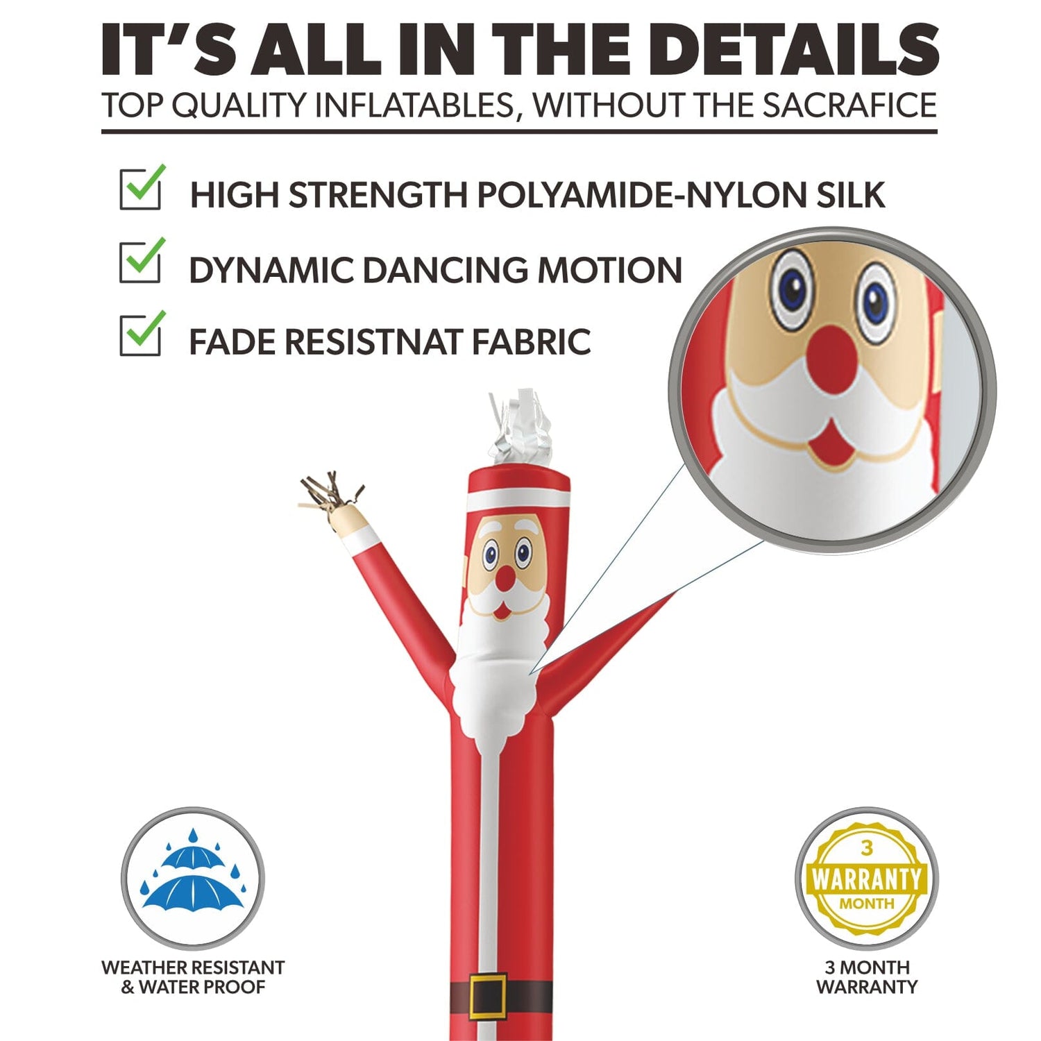 Bring the magic of the North Pole to your doorstep with our Santa Claus Air Dancers® 3-Pack! Whether you're setting up shop for Christmas sales, livening up a tree lot, or adding sparkle to a town event, these jolly giants are here to spread festive cheer far and wide. With their classic red suits and iconic white beards, they're impossible to miss and guaranteed to draw in the holiday crowds. Choose from 6ft for cozy indoor vibes or go big with 10ft & 20ft options for an outdoor spectacle! Let's make this season unforgettable—one dance at a time!
