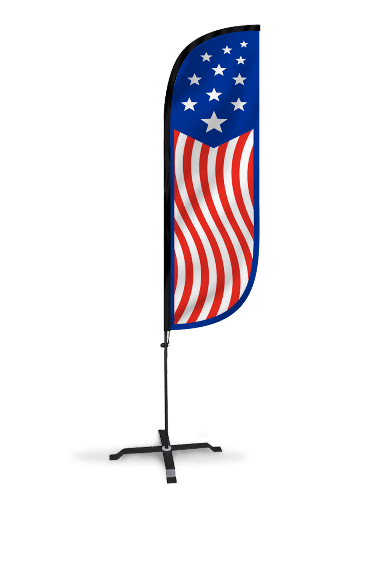 Show your American Pride with the stars and stripes in our American flag feather flag standard! LookOurWay's American flag feather flag can be used for so many purposes, for holidays, events, sales, pride, and much more!