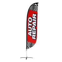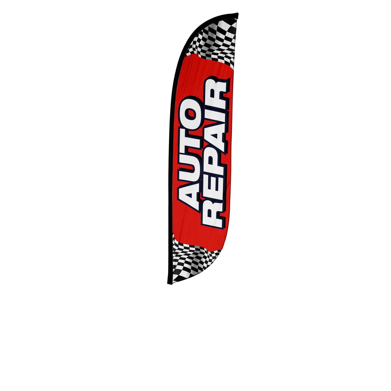 Bring the traffic straight to your garage with this high-impact Auto Repair feather flag—designed to stand out and drive customers in. Featuring a bold red background, racing-style black and white checkers at the top and bottom, and large vertical white “AUTO REPAIR” lettering, this flag screams speed, service, and reliability.