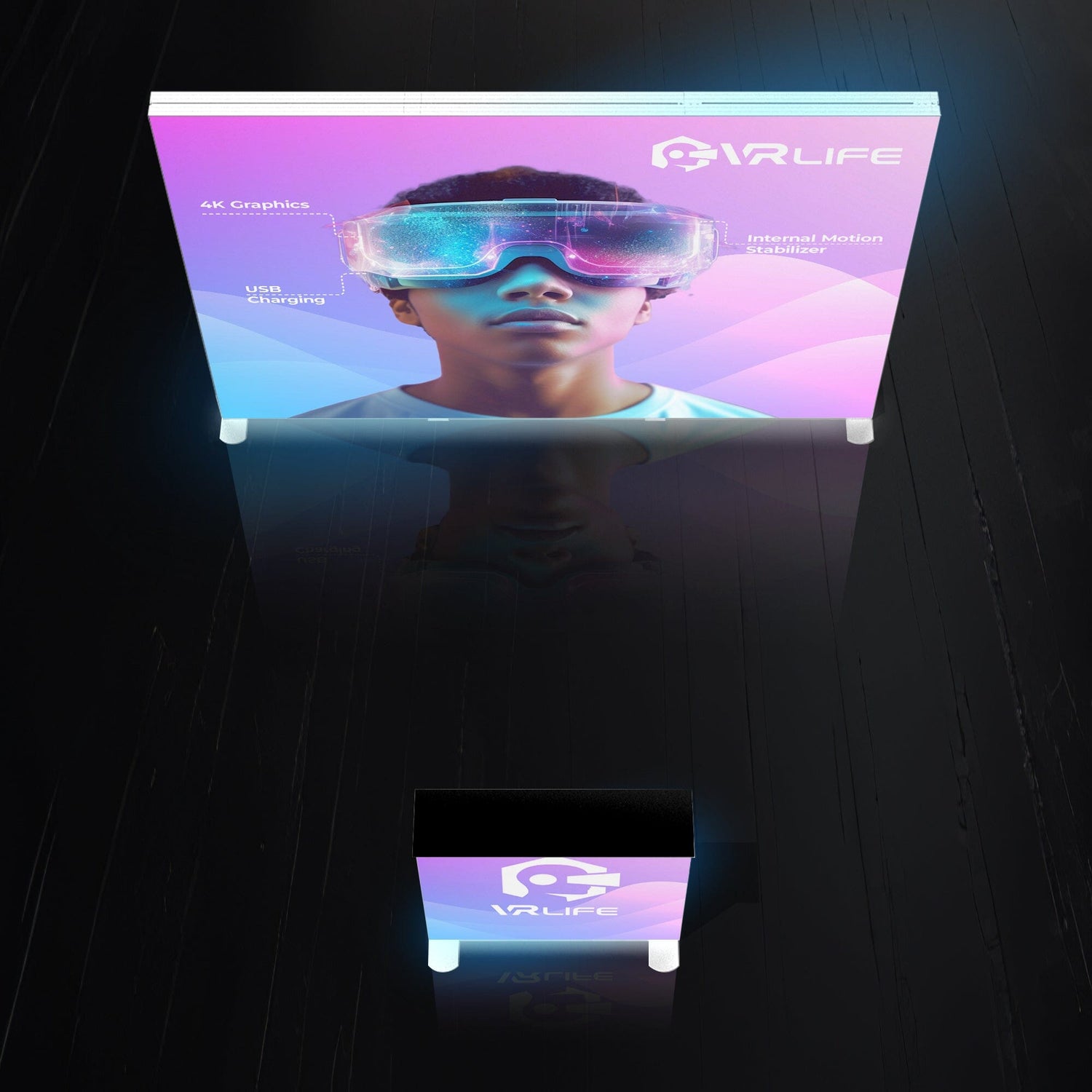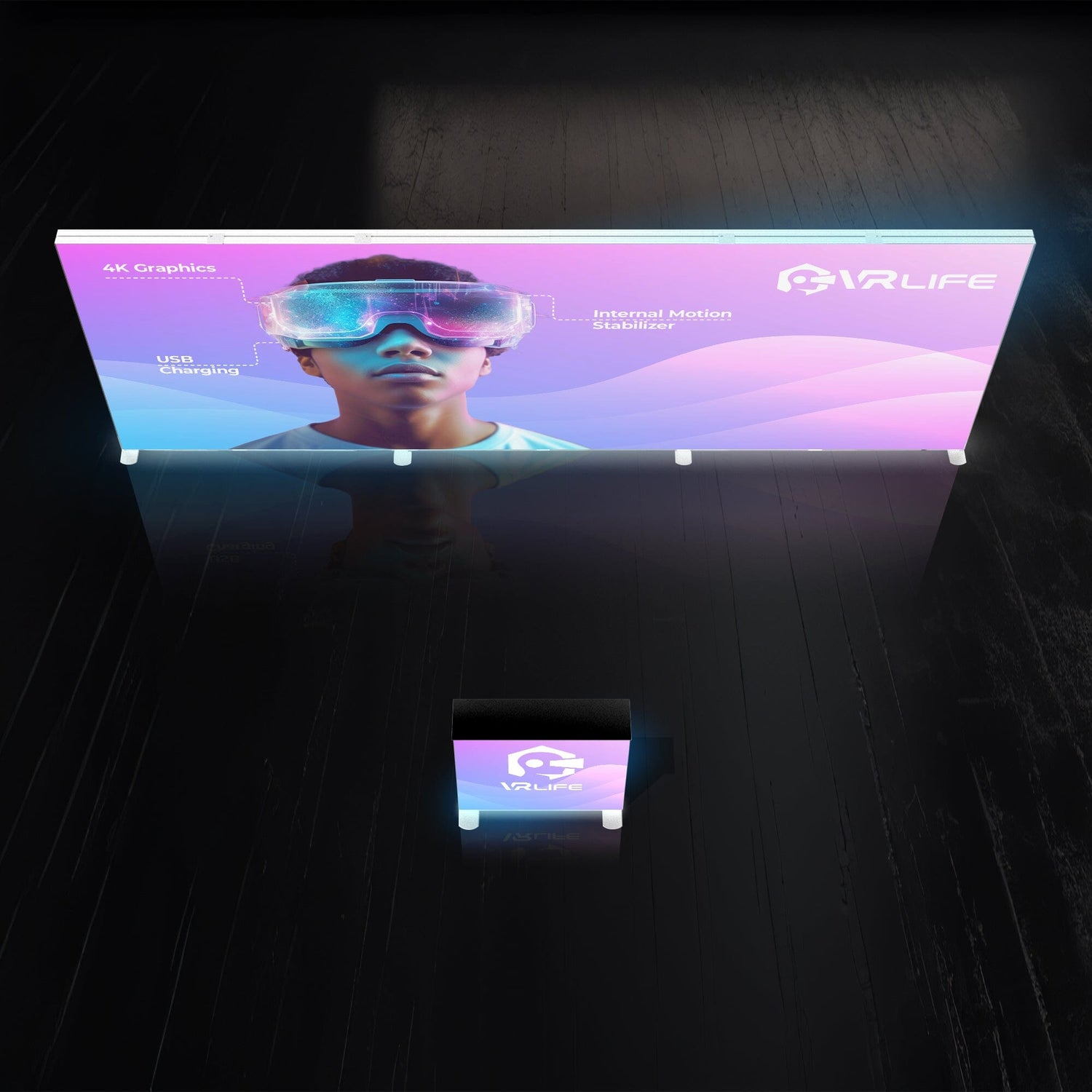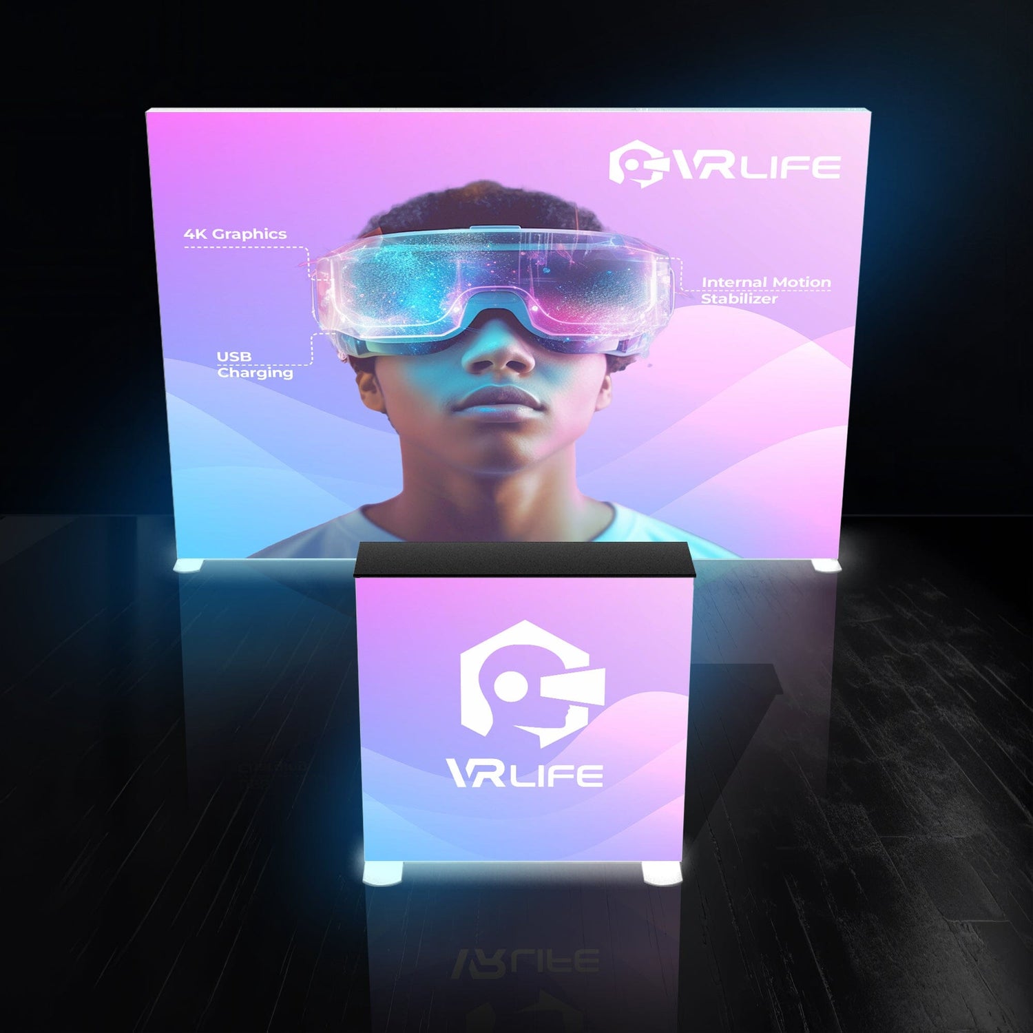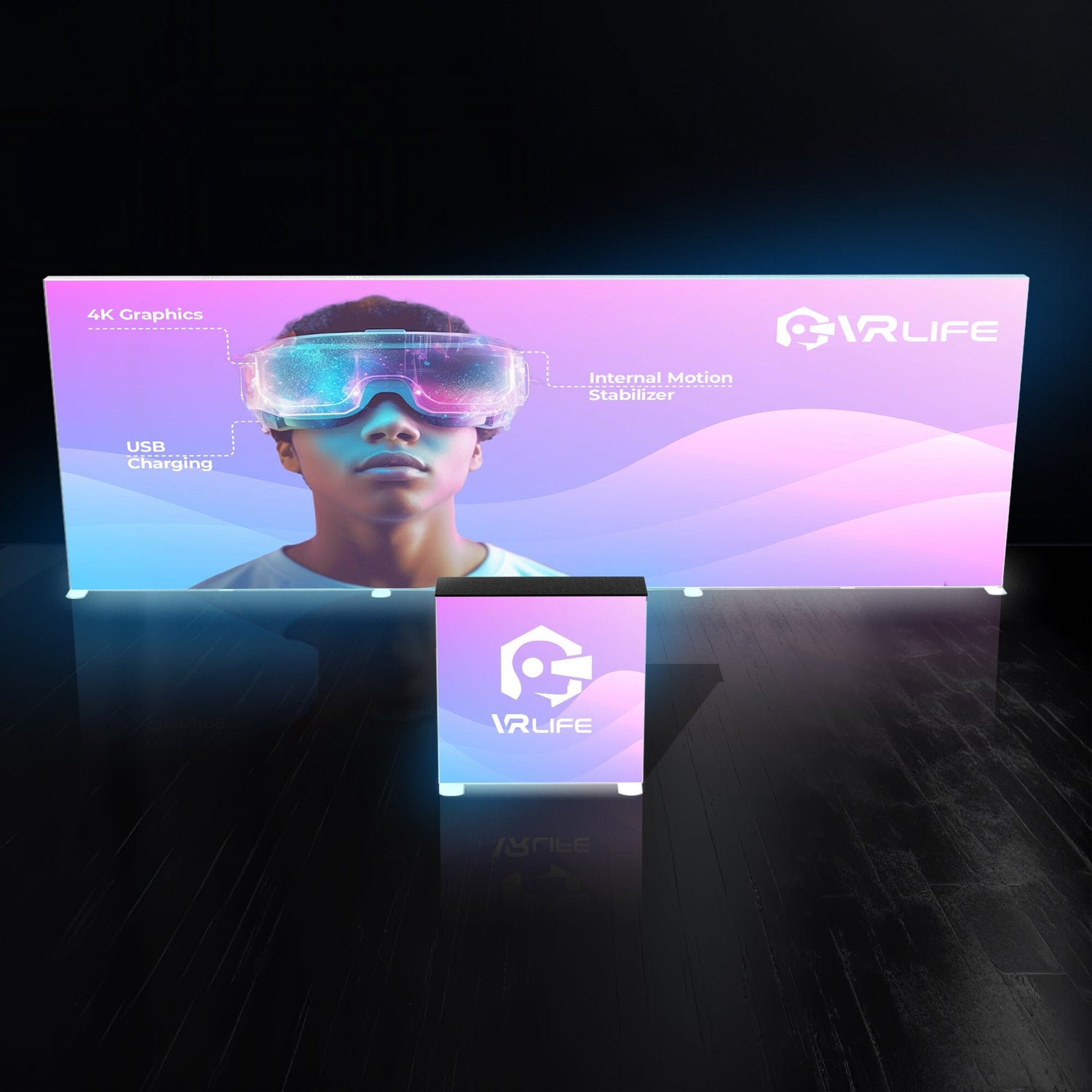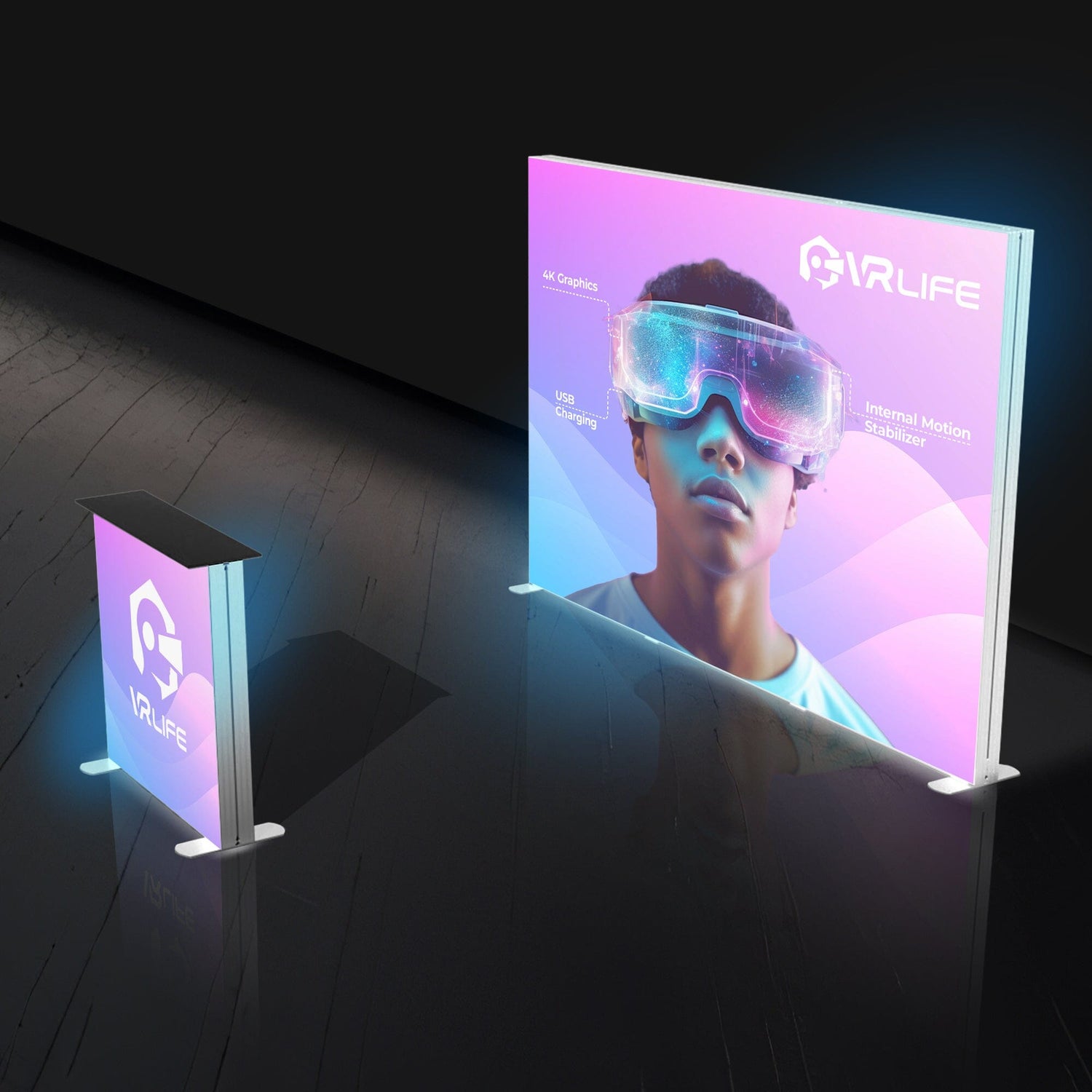 Optional Podium: Complete the look with our optional backlit SEG podium, the perfect finishing touch for your SEG package! Featuring a sleek black countertop and the same stunning internal lighting as our back wall, this podium ensures you stand out in any setting. Its easy tool-less setup means you can focus on what truly matters—your audience. Plus, with the included rolling bag, transporting your new favorite presentation accessory is a breeze. Make a lasting impression and shine bright at every event!
