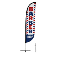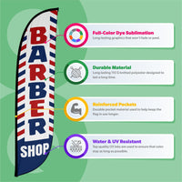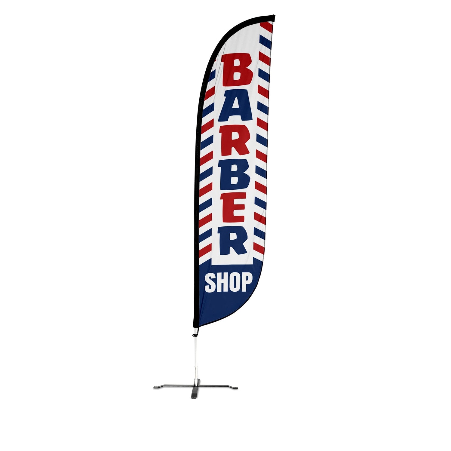 Give your barbershop the spotlight it deserves with this bold red, white, and blue feather flag, inspired by the timeless look of the spinning pole—reimagined for today’s street-level marketing. Whether you run a traditional barbershop or a modern grooming lounge, this flag instantly boosts your curb appeal and draws in fresh faces.