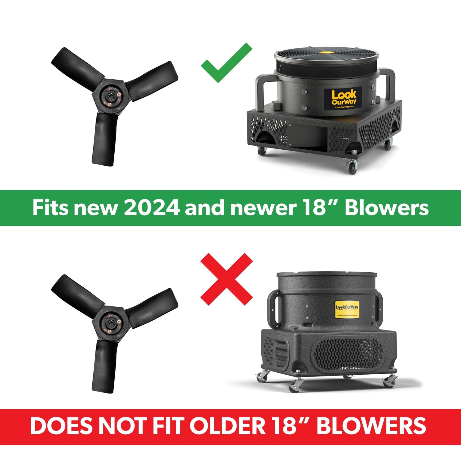 These are replacement fan blades for LookOurWay 18" Air Dancers® Blowers Only. These will ONLY fit our newer 2024 model 18" blowers. See the image for reference. If you have the older model blower DO NOT ORDER THIS!
