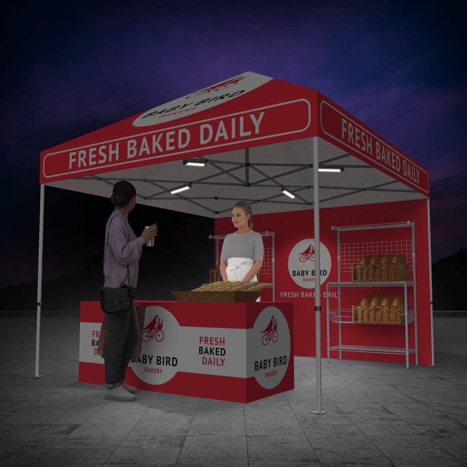 No cords needed! The Canopy Tent LED light set by LookOurWay is a wireless lighting solution, designed to light up your Canopy Tent at your next big event. Each LED powered light is equipped with a rechargeable Lithium Ion Battery that will provide lighting in situation where a constant power source is not an option. Each Light Includes a charger, power cable and mounting strap to secure it to the inside of your tent.
