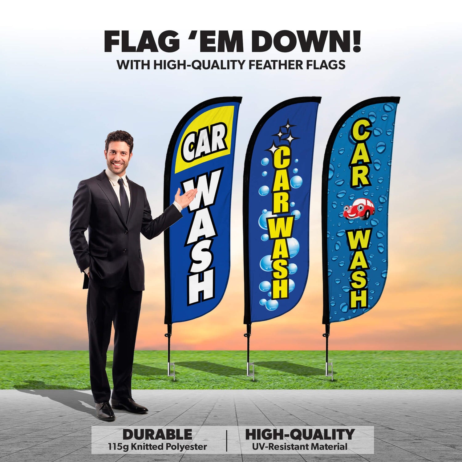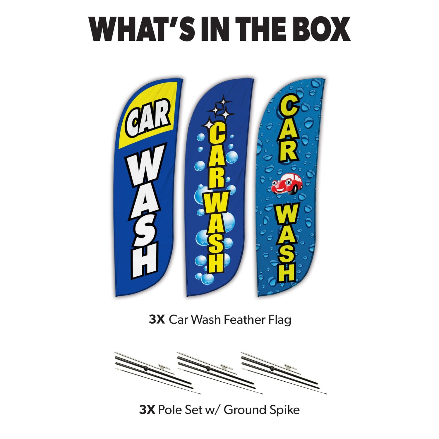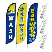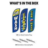 Car Wash Feather Flag - Variety 3 Pack w/ Ground Spike Pole Set