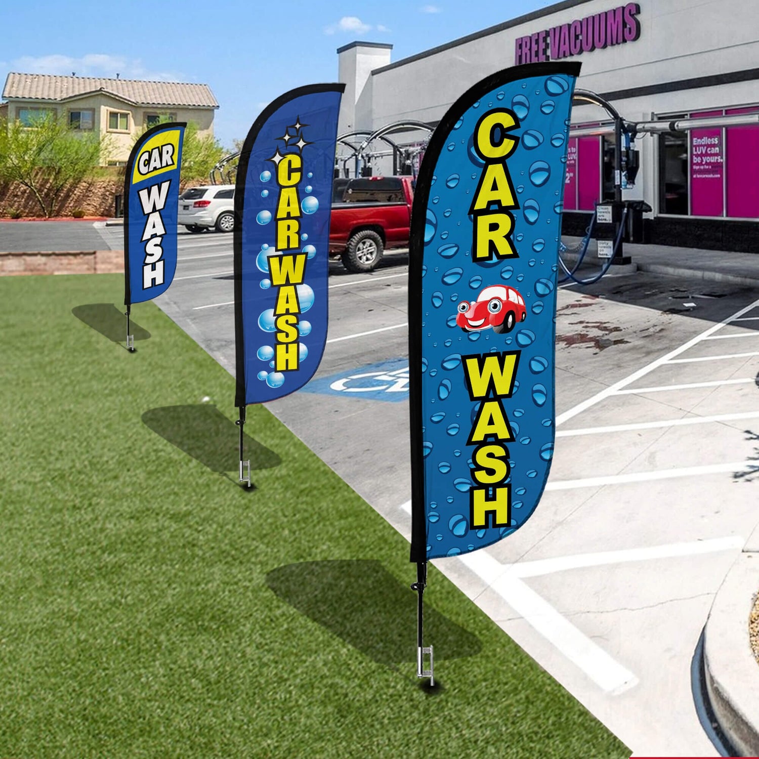The LookOurWay Car Wash Feather Flag Bundle is in stock and ready to ship, get yours today!