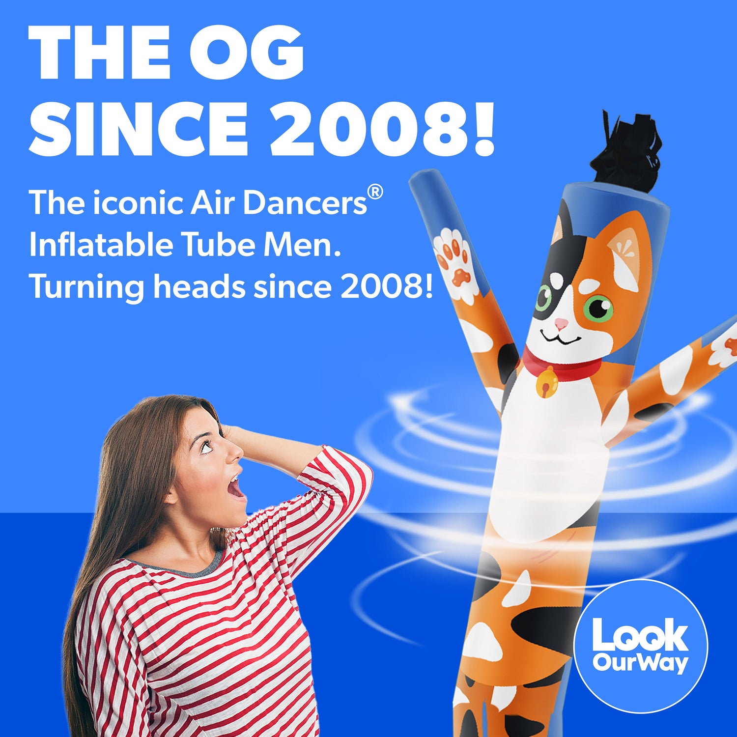 Whether you’re hosting a grand opening, retail sale, birthday party, zoo or aquarium event, the 6ft Calico Cat Air Dancer® adds a friendly, playful touch that will captivate your audience.