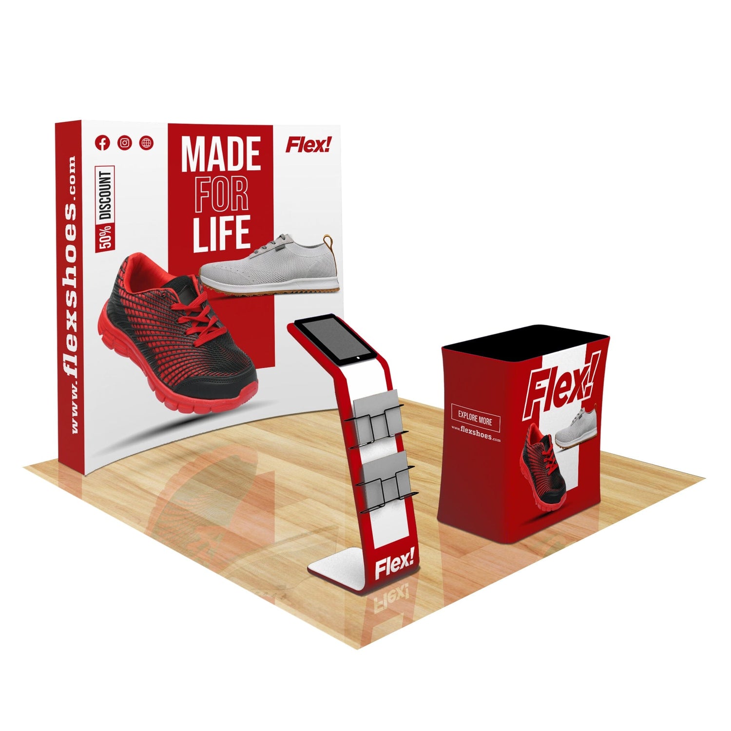 Curved Pop Up Trade Show Display w/ Tablet & Media Stand