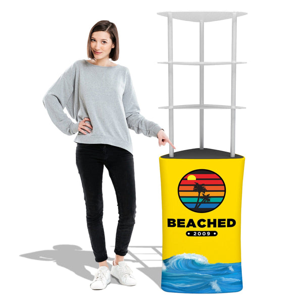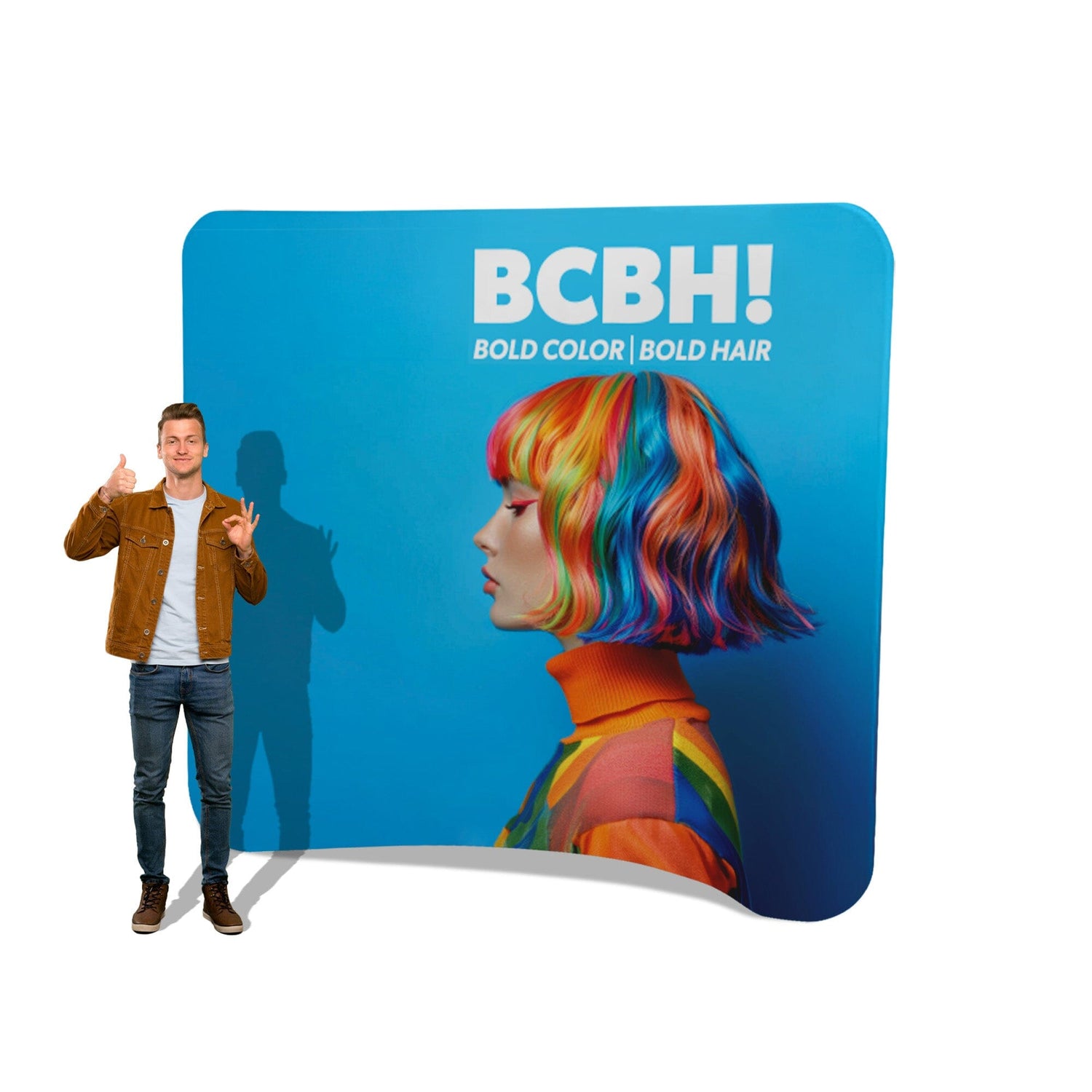 Make a stunning first impression with a Curved Tension Fabric Backdrop by LookOurWay—the perfect starting point for your trade show booth, event setup, or branded display. Available in 8ft or 10ft widths, this sleek, eye-catching backdrop gives your brand a bold, professional edge. Your custom graphics are printed on premium tension fabric using industry-leading dye sublimation technology for vibrant, long-lasting color. The stretch fabric fits seamlessly over a lightweight aluminum frame, creating a smooth, frameless look that’s easy to set up, easy to transport, and built to impress. Ideal for trade shows, school functions, office lobbies, step-and-repeat photo ops, and more, this versatile display brings your message front and center—where it belongs.