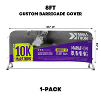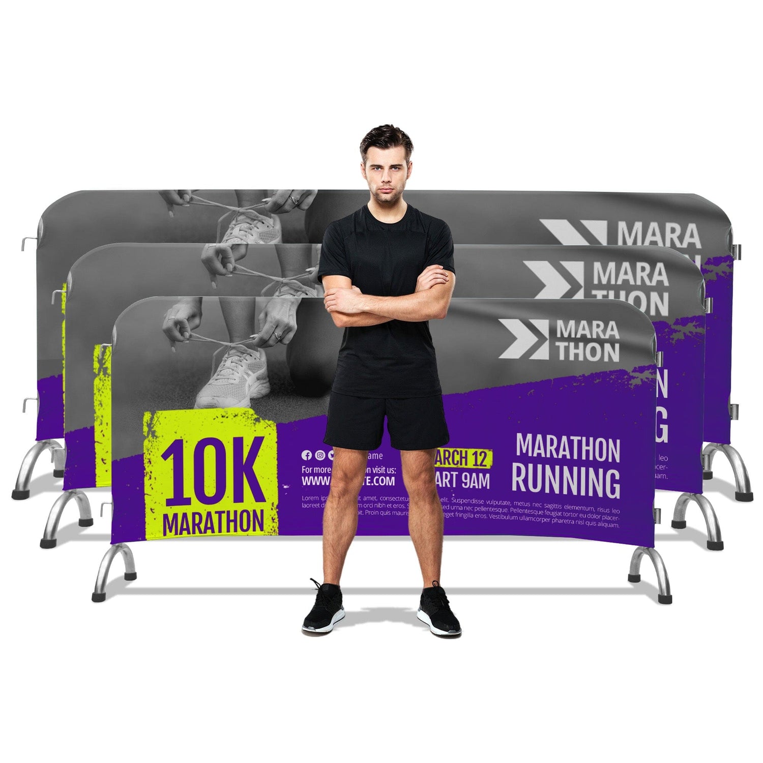 The Custom Barricade Covers by LookOurWay Barricade Covers are the perfect way to apply full-color branding to all of the barricades at your next big event. We are happy to offer these in the 3 most popular barricade sizes (6.5ft, 8ft & 8.5ft). Each cover is constructed using premium of Flame-Retardant 240g Tension Fabric and sewed into a pillowcase form, w/ Hook & Loop strips down each side to ensure a secure fit. These stunning dye-sublimated coverings are ideal for crowd management during grand openings, sporting events, festivals, parades, and other high-traffic situations.