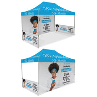 Build your own Custom 10x15 Canopy Tent package today. Start off with our commercial grade Hex Tent Frame and then add any combination Custom Printed Top & Walls to complete the perfect Canopy tent package. All LookOurWay Canopy Tops & Walls are printed using our industry leading dye sublimation process and are hand finished to ensure a perfect fit for every order. Backed by a full 1-year warranty this Canopy Tent is affordable, high-quality and the beautiful print and finishing details are guaranteed to help you stand out at your next big event.
