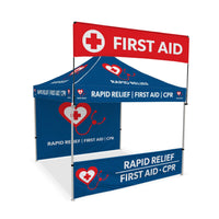 We use a dye sublimation process which gives the tent a clean and high-quality print look. This method is used with heat transfer creating vibrant colors and a special laminate layer providing additional production against UV and moisture. This printing method ensures a high-quality look and offers durability to endure normal outdoor weather conditions.