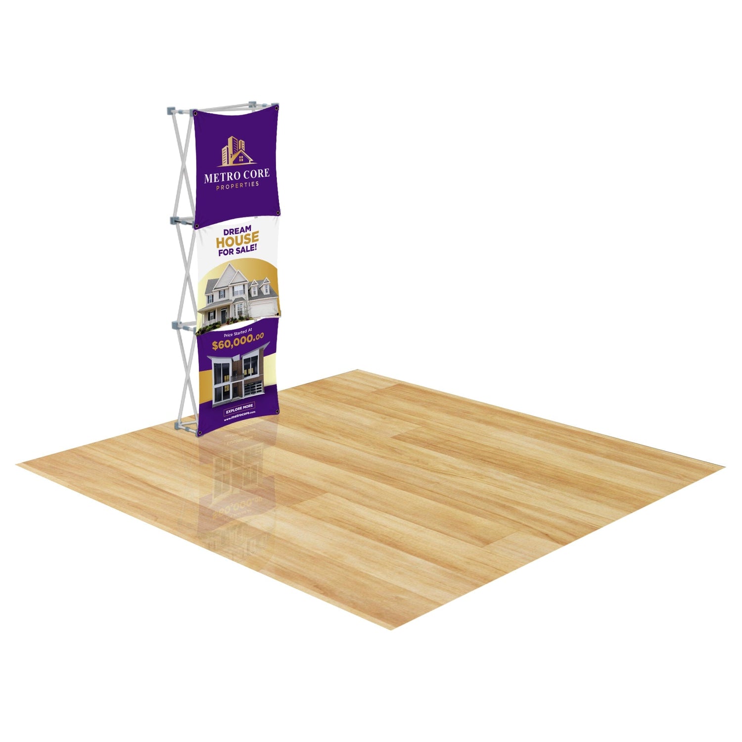 Turn heads at your next event with the 1x3 floor-standing pop-up booth, a compact yet powerful display that sets up in seconds and now comes as a complete package with your choice of a hard case podium or a 6-ft/8-ft table and custom throw. Standing 87.4'' high with three stacked panels, it creates a bold, professional backdrop while saving valuable floor space. The lightweight aluminum frame locks together with magnetic connectors, and vibrant dye-sublimated graphics stretch smoothly for a polished finish—no tools required. Pack it in the included carry bag or upgrade to the hard case podium for extra protection and counter space. Sharp, full-color visuals, portable design, and easy, reusable setup make this all-in-one booth solution perfect for trade shows, expos, and marketing events.