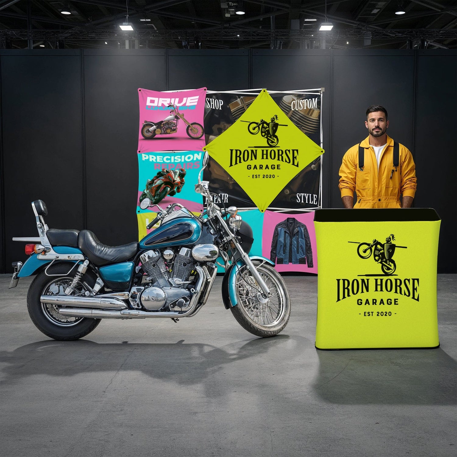 3x3 Pop-Up Trade Show Booth with Optional Podium or Custom Table Covers