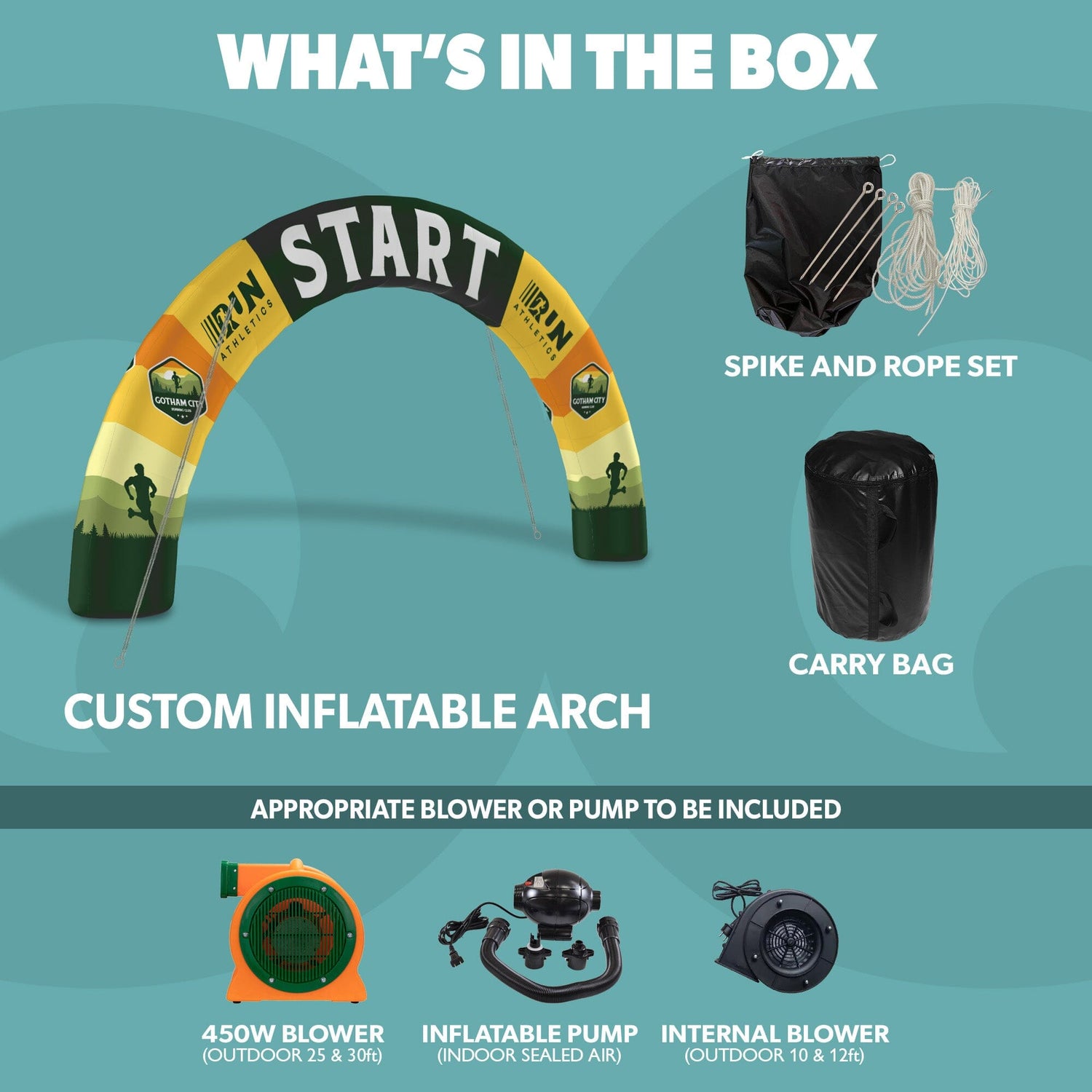 25ft Inflatable Arch - 20ft W x 10ft H, optional T-Base is 8ft in length & 33.5 inches in diameter