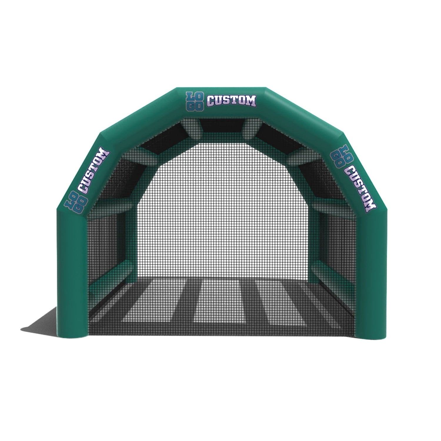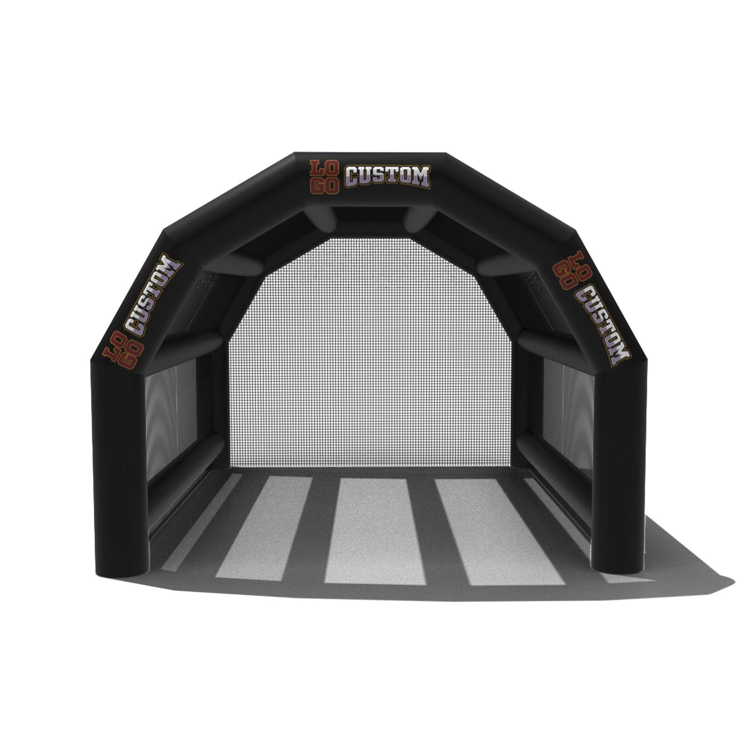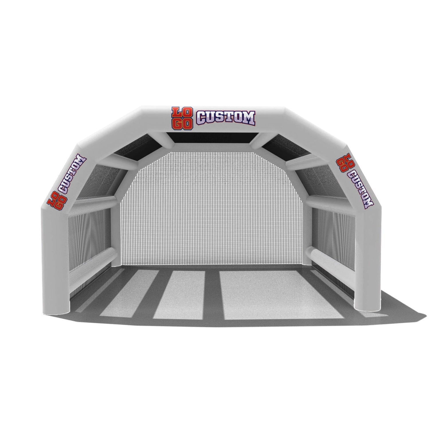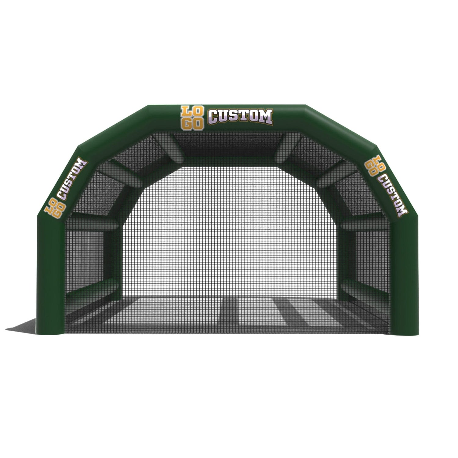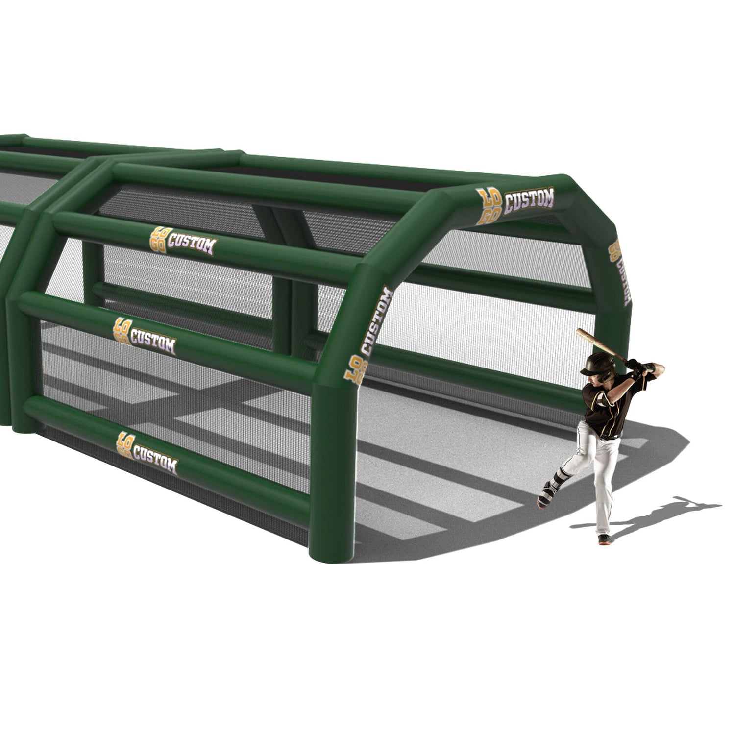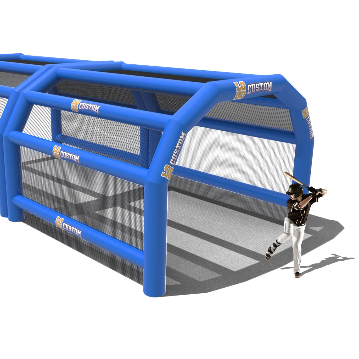 The custom Inflatable Batting Cages by LookOurWay are an exciting new way to look at the future of sporting equipment. The commercial-grade PVC construction is designed to keep your team safe in all types of weather. The popular wide frame construction is perfectly engineered to catch foul balls and wild pitches for High School, College or even Pro-level use. Best of all each backstop is fully customizable allowing you to choose between 12 popular colors, as well as logo placement. Combine multiple 20ft units to reach your desired length from 20-80ft (each sold separately)