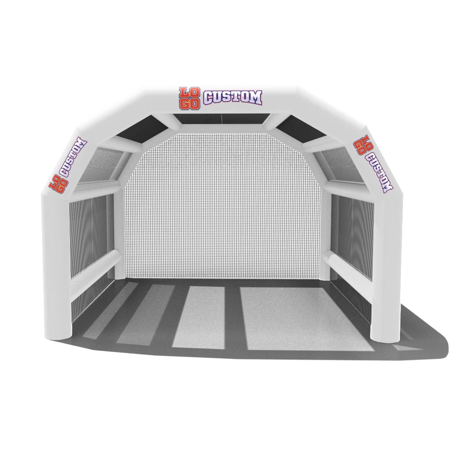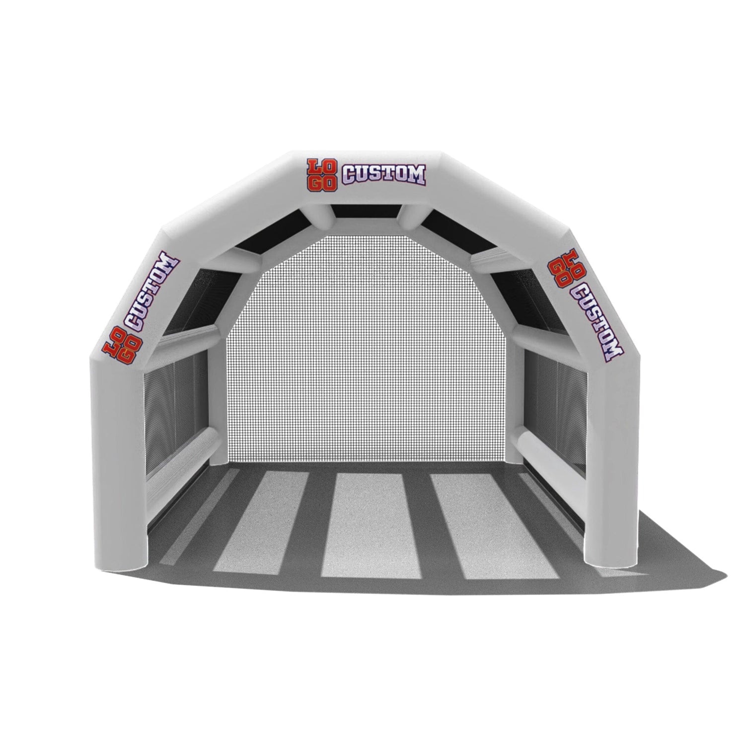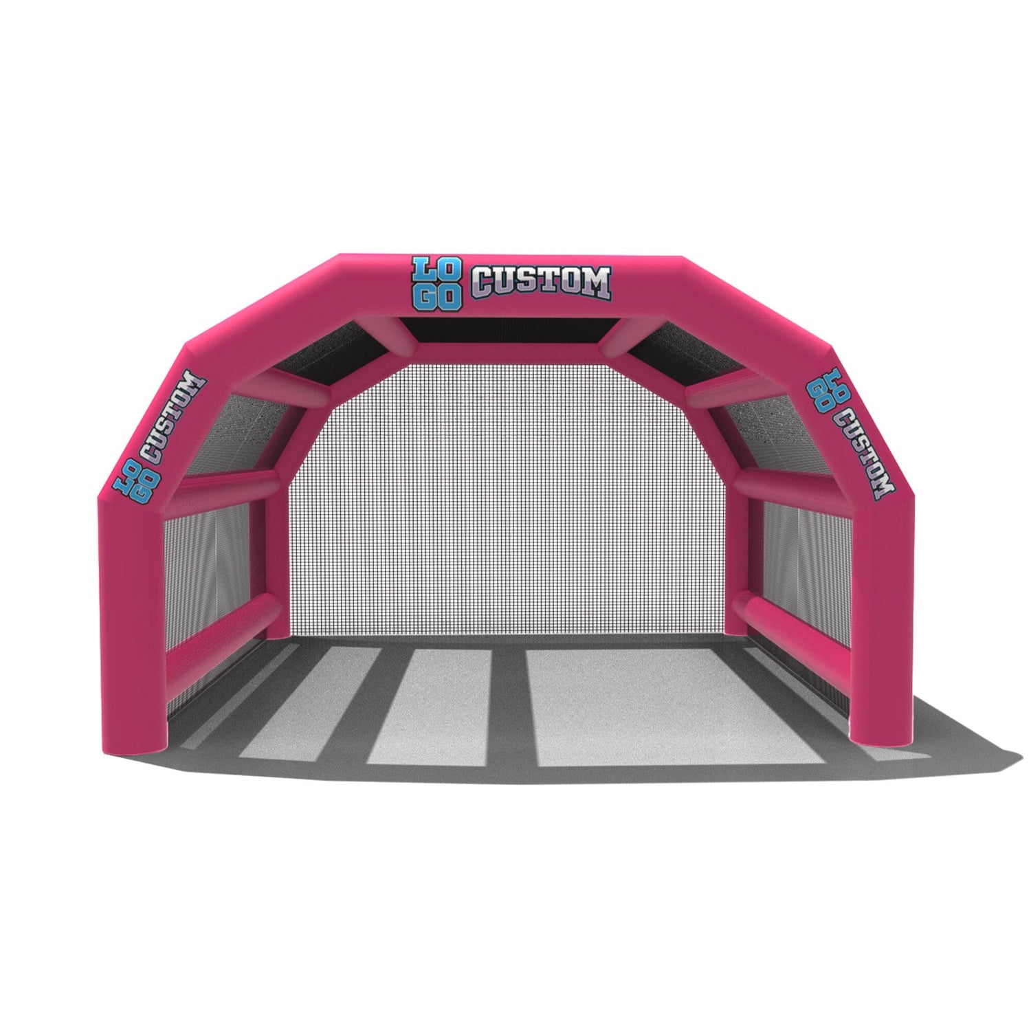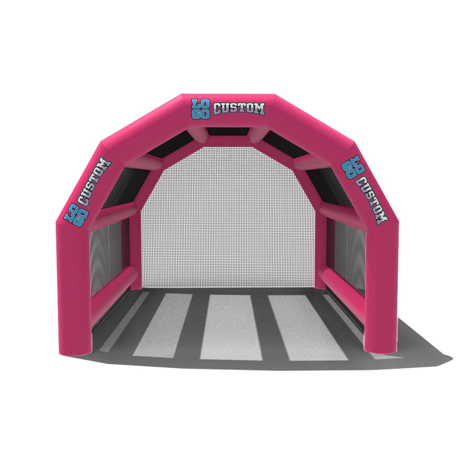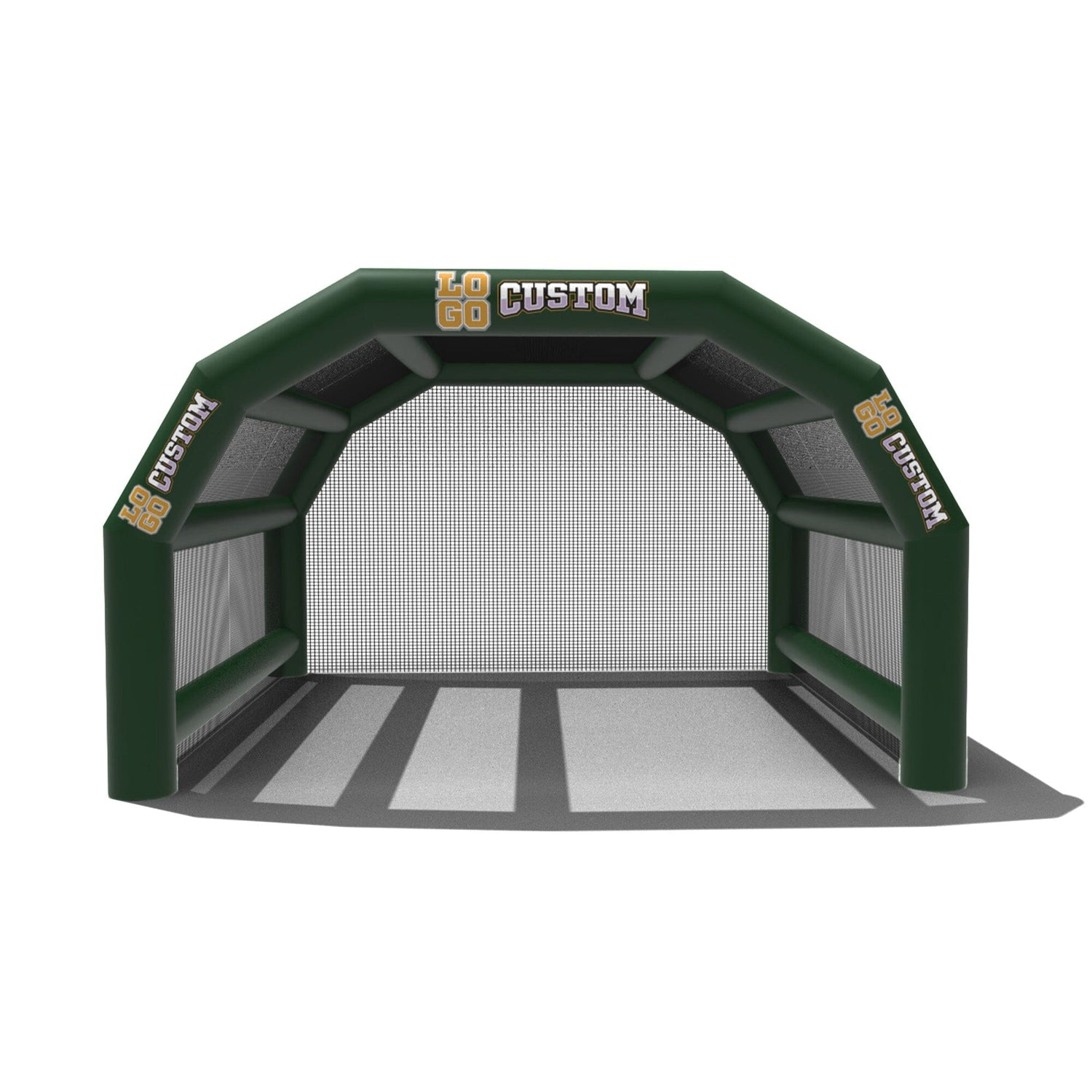 The custom Inflatable Batting Cages by LookOurWay are an exciting new way to look at the future of sporting equipment. The commercial-grade PVC construction is designed to keep your team safe in all types of weather. The popular wide frame construction is perfectly engineered to catch foul balls and wild pitches for High School, College or even Pro-level use. Best of all each backstop is fully customizable allowing you to choose between 12 popular colors, as well as logo placement. Combine multiple 20ft units to reach your desired length from 20-80ft (each sold separately)