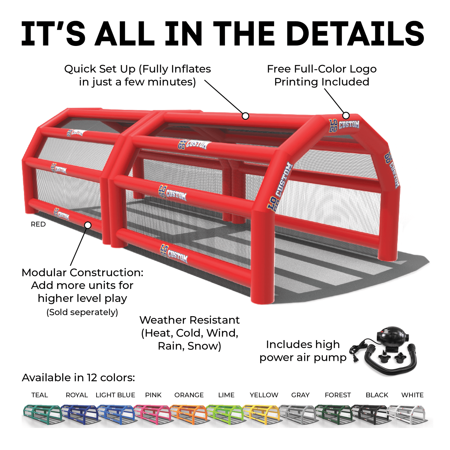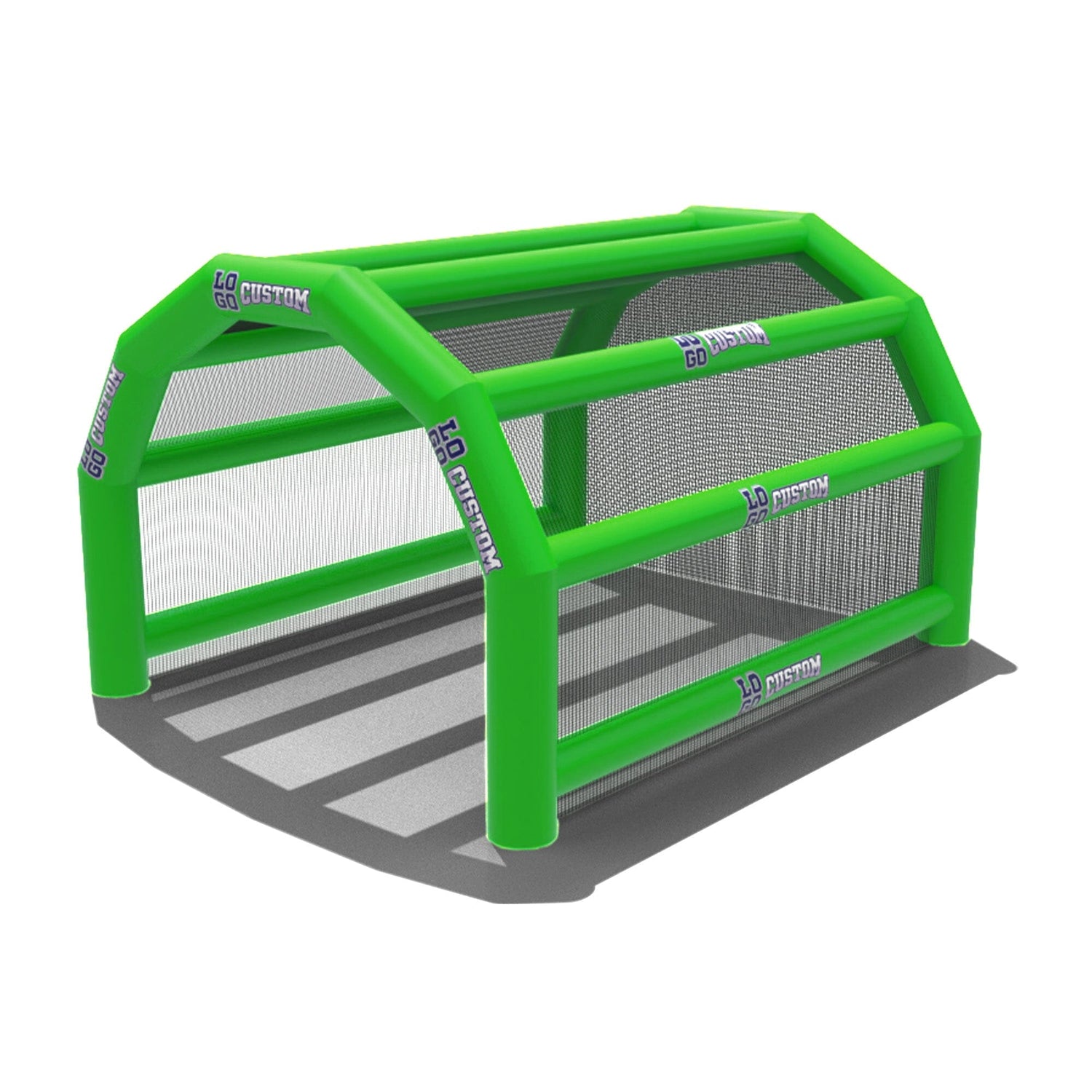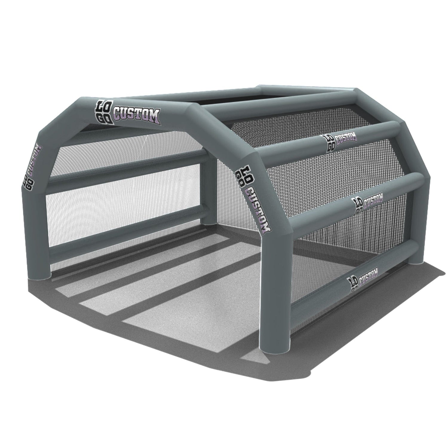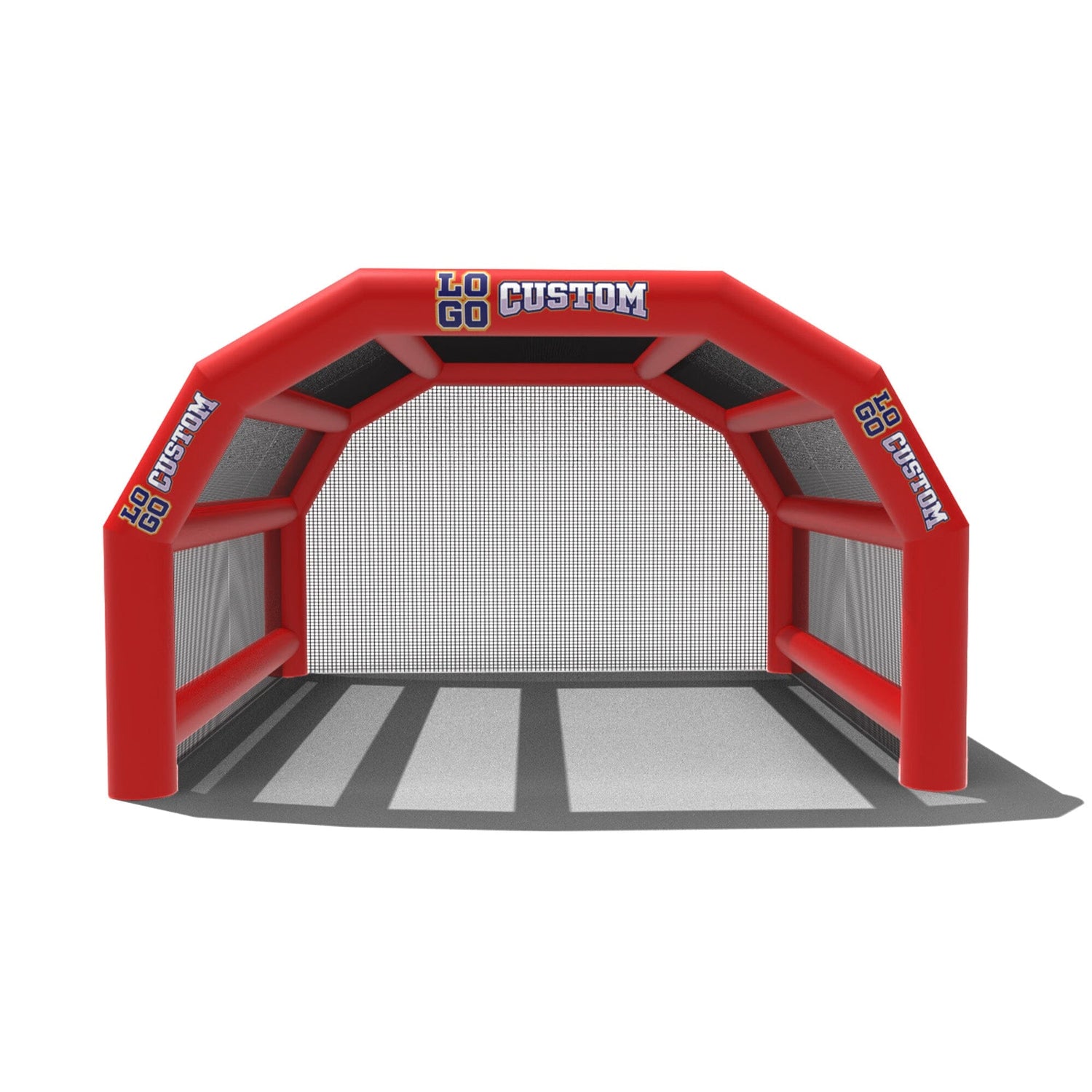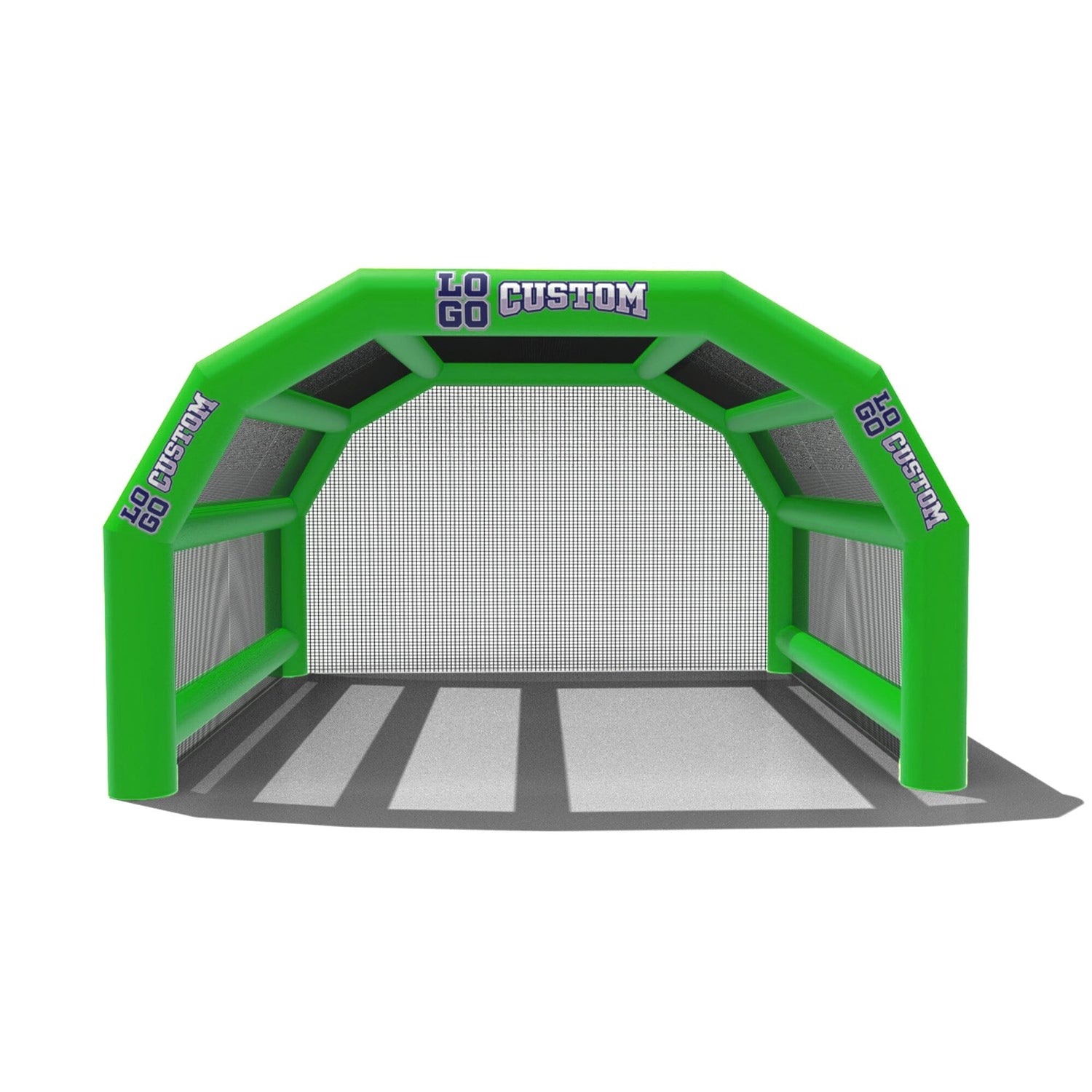 The custom Inflatable Batting Cages by LookOurWay are an exciting new way to look at the future of sporting equipment. The commercial-grade PVC construction is designed to keep your team safe in all types of weather. The popular wide frame construction is perfectly engineered to catch foul balls and wild pitches for High School, College or even Pro-level use. Best of all each backstop is fully customizable allowing you to choose between 12 popular colors, as well as logo placement. Combine multiple 20ft units to reach your desired length from 20-80ft (each sold separately)
