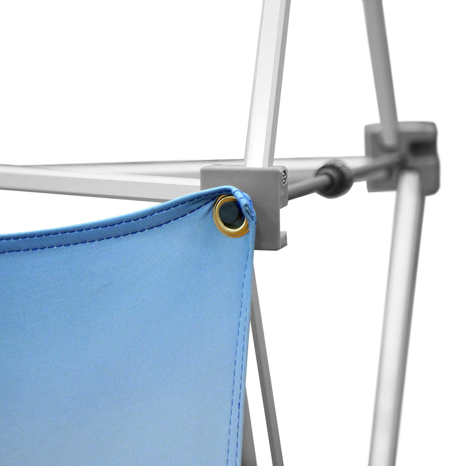 The lightweight pop-up aluminum frame and vibrant, dye-sublimated elastic polyester panels make setup a breeze—no tools required. Each panel attaches easily with corner grommets, giving you a smooth, taut surface that makes your logos and messaging pop. Pack it up in the included carrying bag and go—portable, reusable, and stress-free.