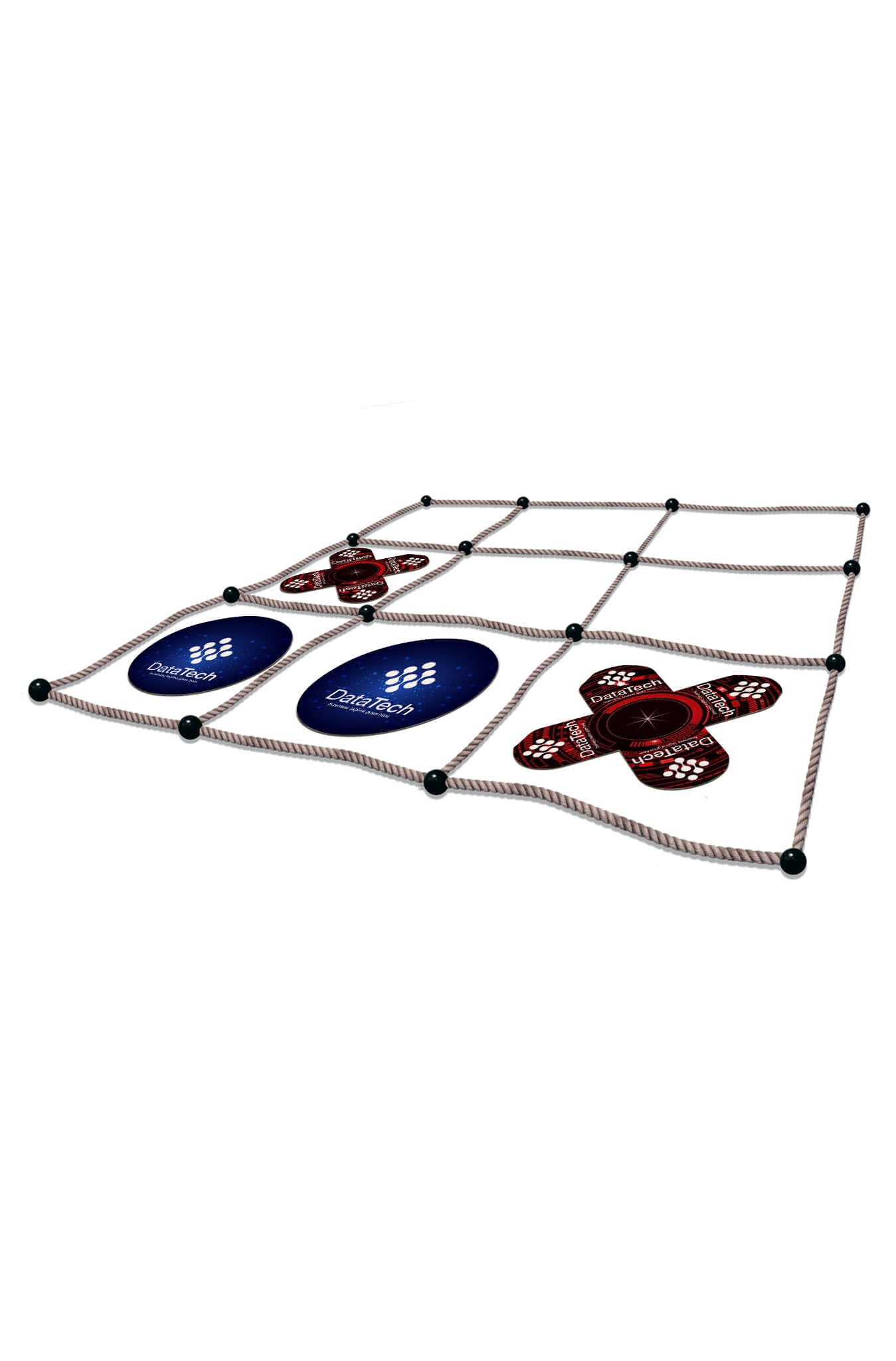 The game includes a 45" square rope grid that can be easily set up on grass, turf, or booth flooring, giving you flexibility indoors or outdoors. The oversized “X” and “O” pieces are made from sturdy, finished wood construction and printed in full-color to showcase your brand at its best.