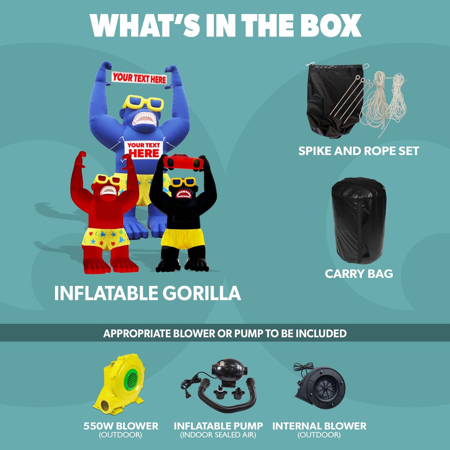 Lead Time: Giant Inflatable Gorillas are an in-stock item and ready to ship today. Please note 1-2 day lead time for a custom banner if applicable.