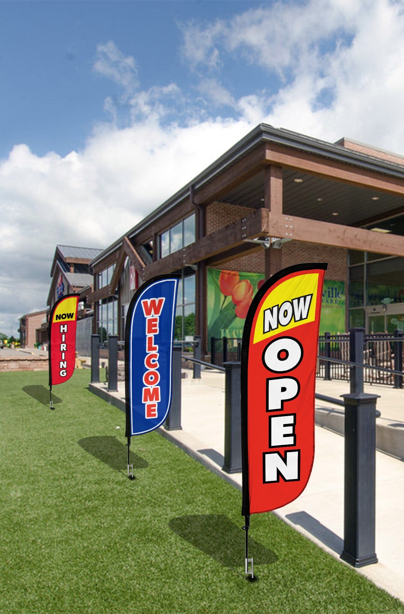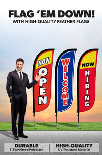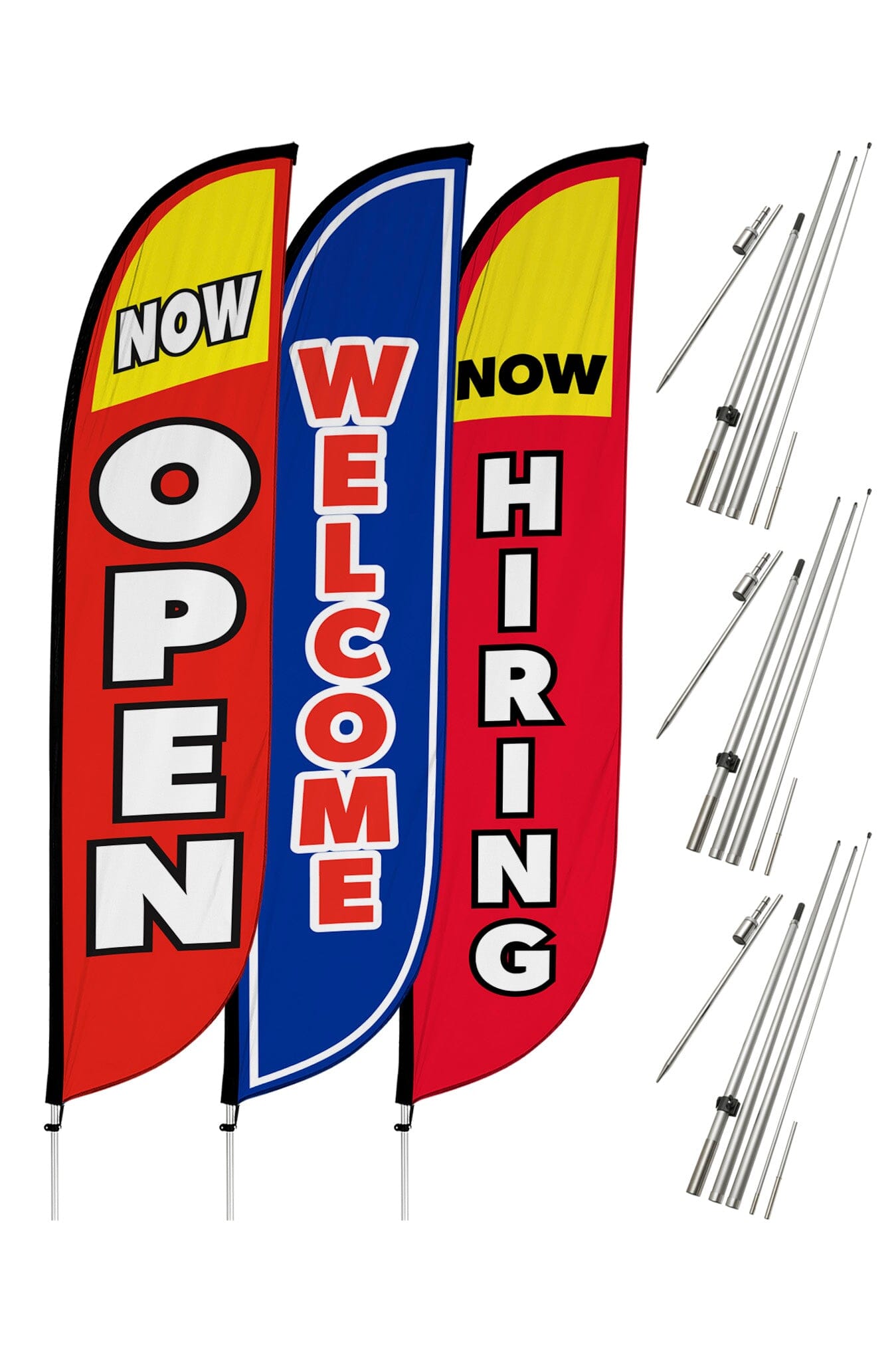 LookOurWay is proud to now offer a special 3-Pack bundle of our best selling Feather Flags. The bundle consist of our iconic Open, Welcome & Now Hiring Feather Flags. These are an effective outdoor advertising tool that is guaranteed to attract customers to your business. The vibrant colors show all potential customers that you're open and ready for business. Bundle and save with this easy to use, easy to instal feather flag pole set.
