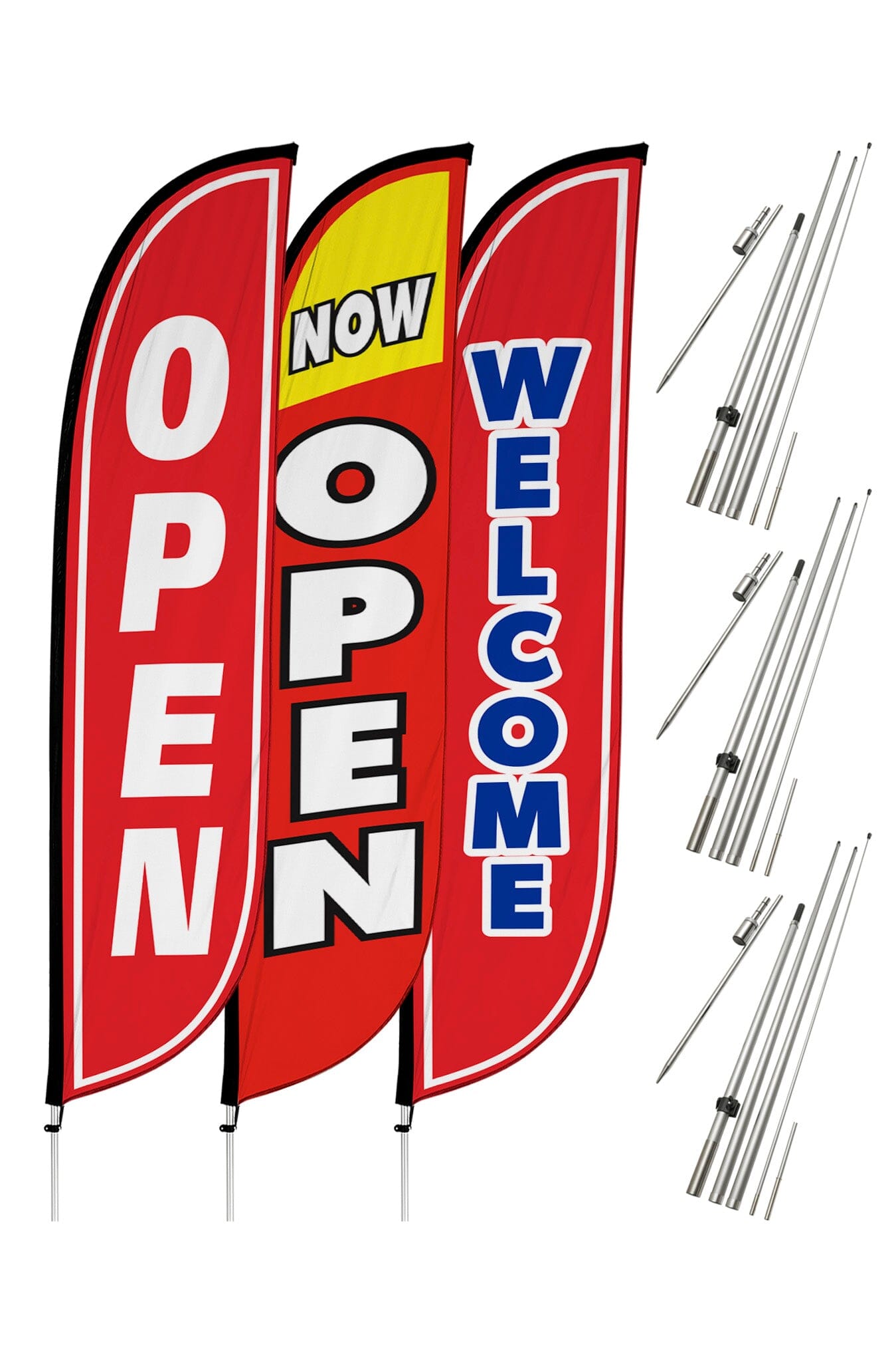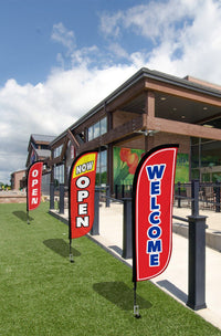 LookOurWay is proud to now offer a special 3-Pack bundle of our best selling Feather Flags. The bundle consist of our iconic Now Open, Welcome & Open Feather Flags. These are an effective outdoor advertising tool that is guaranteed to attract customers to your business. The vibrant colors show all potential customers that you're open and ready for business. Bundle and save with this easy to use, easy to instal feather flag pole set.