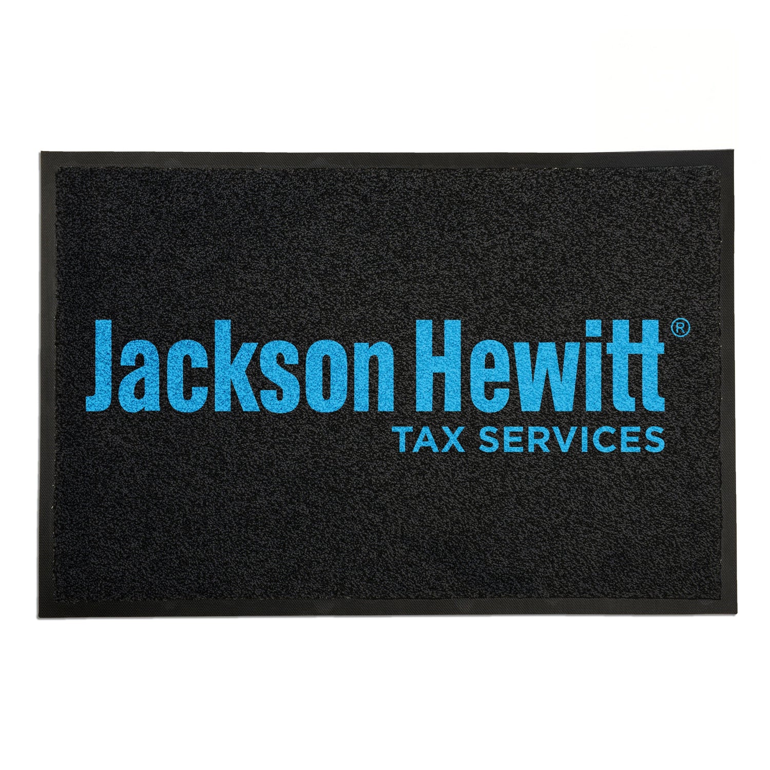 The Jackson Hewitt Carpeted Door Mat by LookOurWay is a premium floor mat that is that is recommended for indoor commercial use at entryways, in lobbies, at front desks or anywhere you want to display the Jackson Hewitt logo. Constructed of dense 32oz carpet that is digitally printed using the latest innovation in dying technology in high-definition. All designed and approved for use at any Jackson Hewitt Tax Services location.