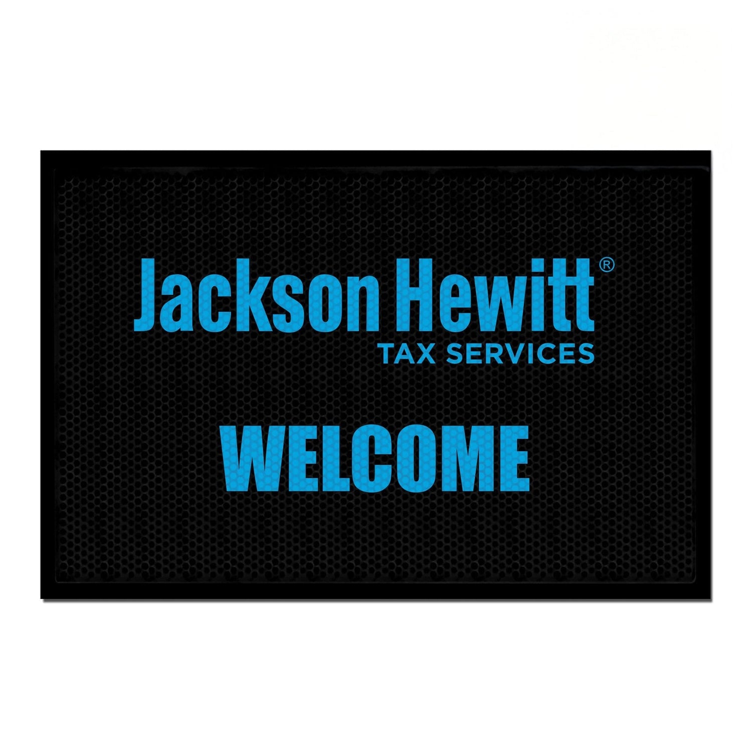 The Jackson Hewitt Outdoor Rubber Welcome Mat by LookOurWay is a premium floor mat that is recommended for use in commercial and industrial settings. Each Mat features a Jackson Hewitt approved that are printed on vinyl and heat pressed into a nitrile rubber surface. Recommended for use in commercial and industrial settings where custom branding or messaging is desired, along with the debris removal qualities of a scraper mat.
