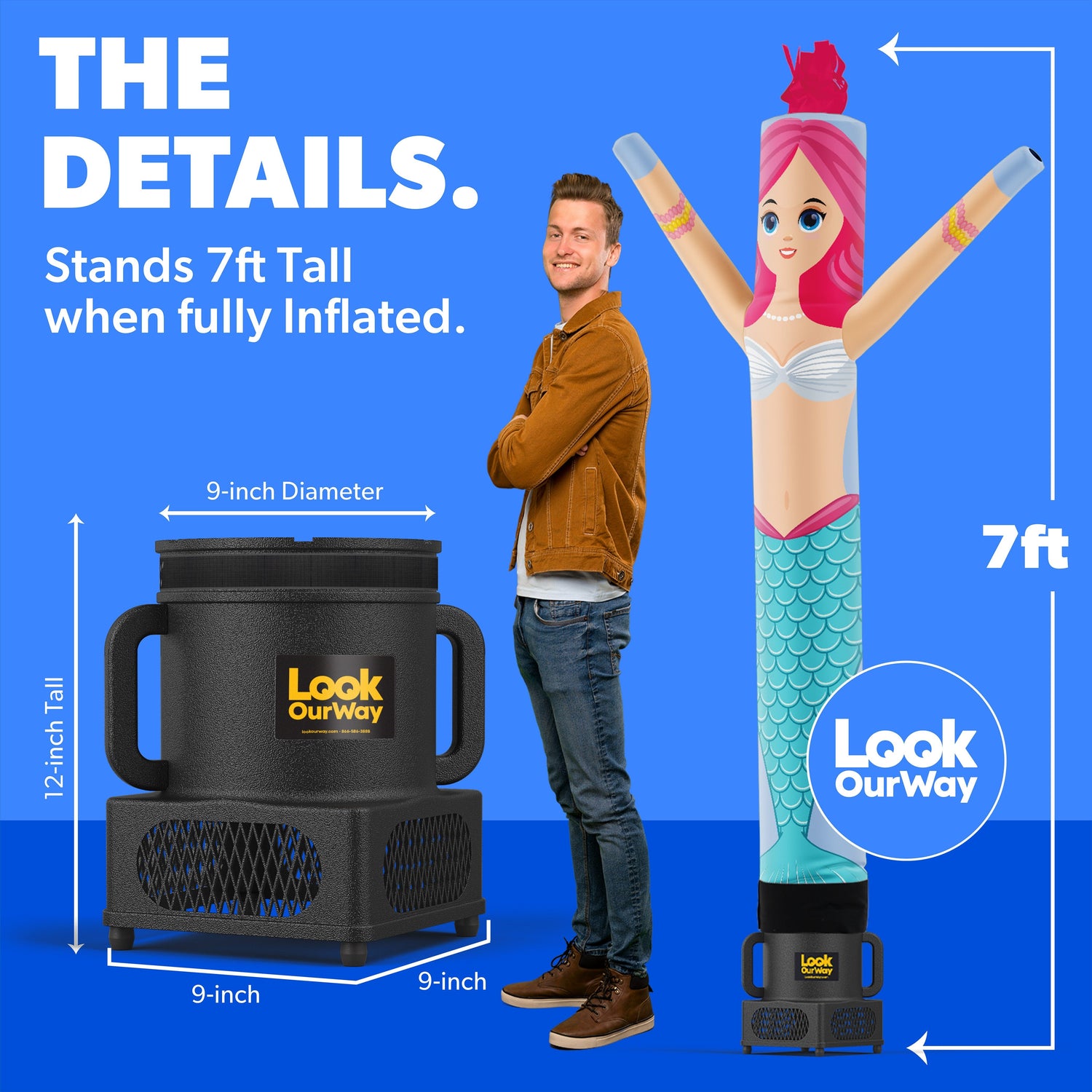 Make a splash at your next promotion with the 6ft Mermaid Air Dancer® from LookOurWay! This eye-catching inflatable features a vibrant teal mermaid body, seashell bathing suit top, flowing bright pink hair, and a double-sided design for maximum visibility. Standing 6 feet tall, it’s perfect for businesses, events, birthday parties, aquariums, zoos, or themed promotions looking to grab attention with ocean-inspired energy.