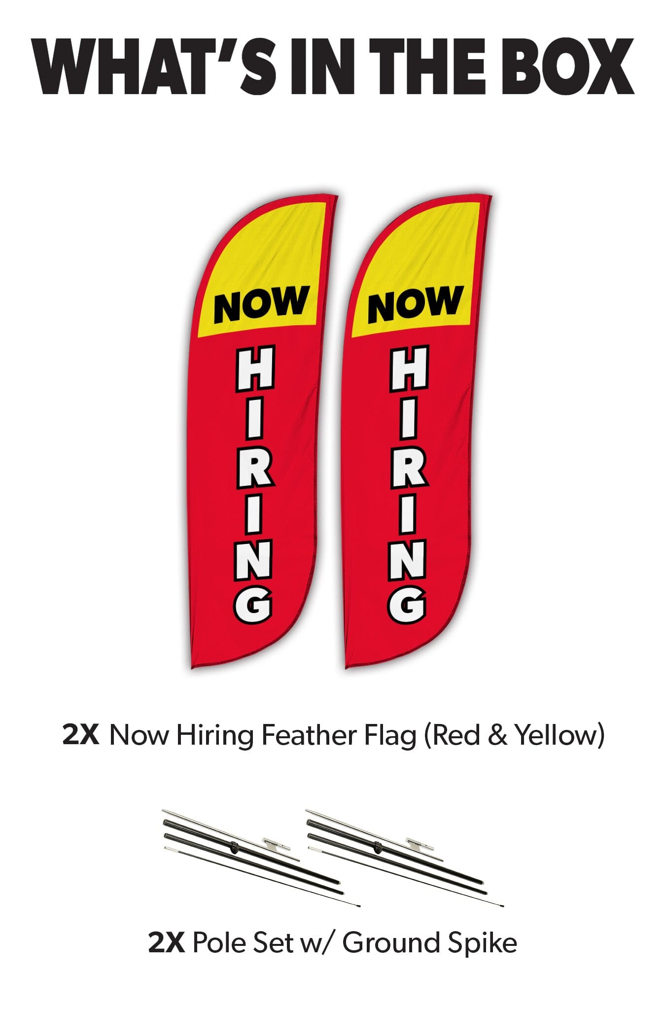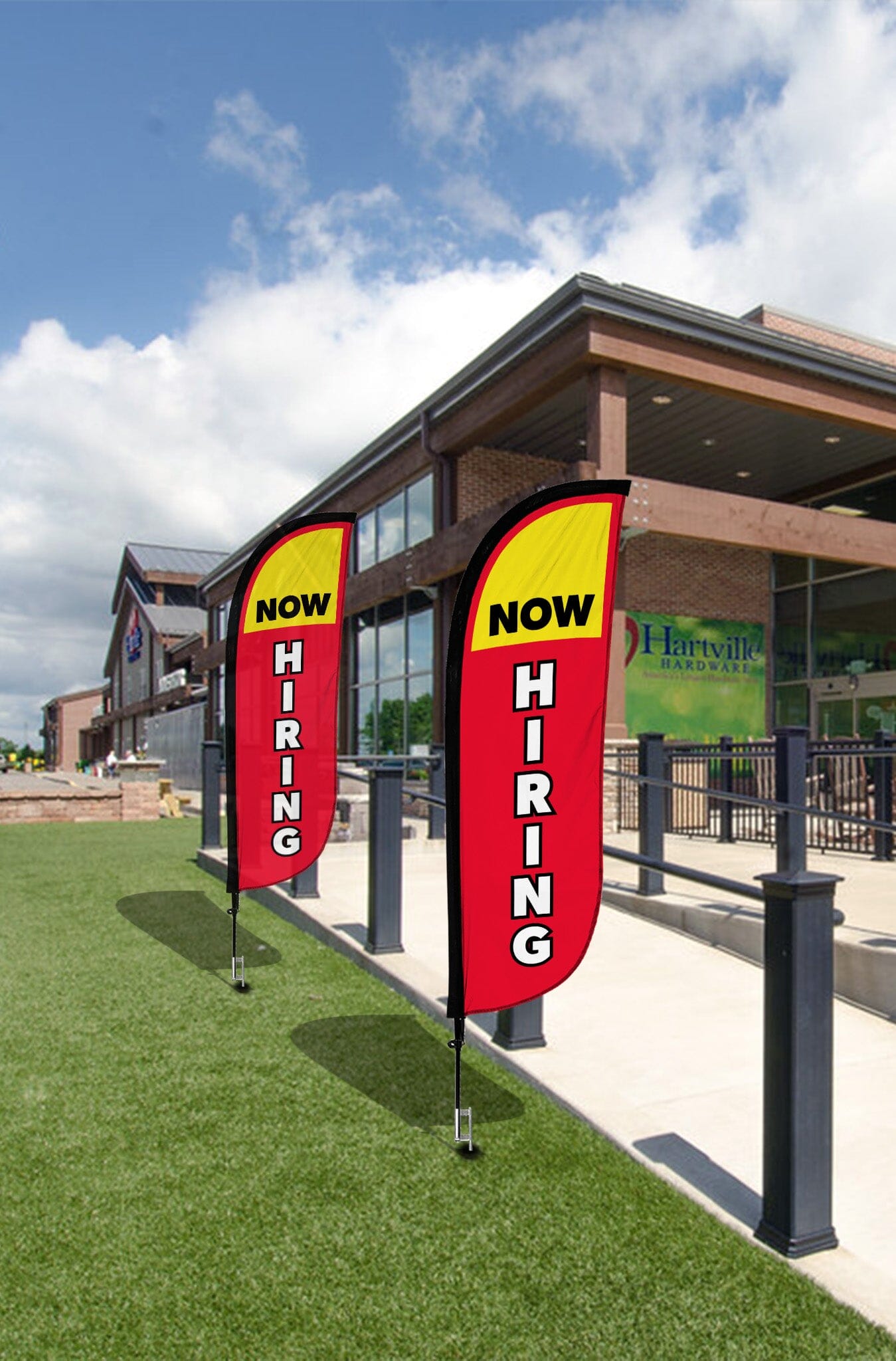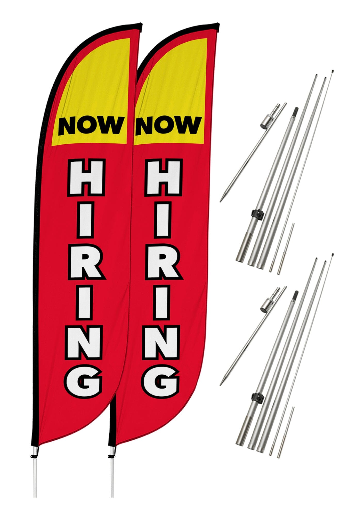 Now Hiring Feather Flag - 2 Pack w/ Ground Spike Pole Set