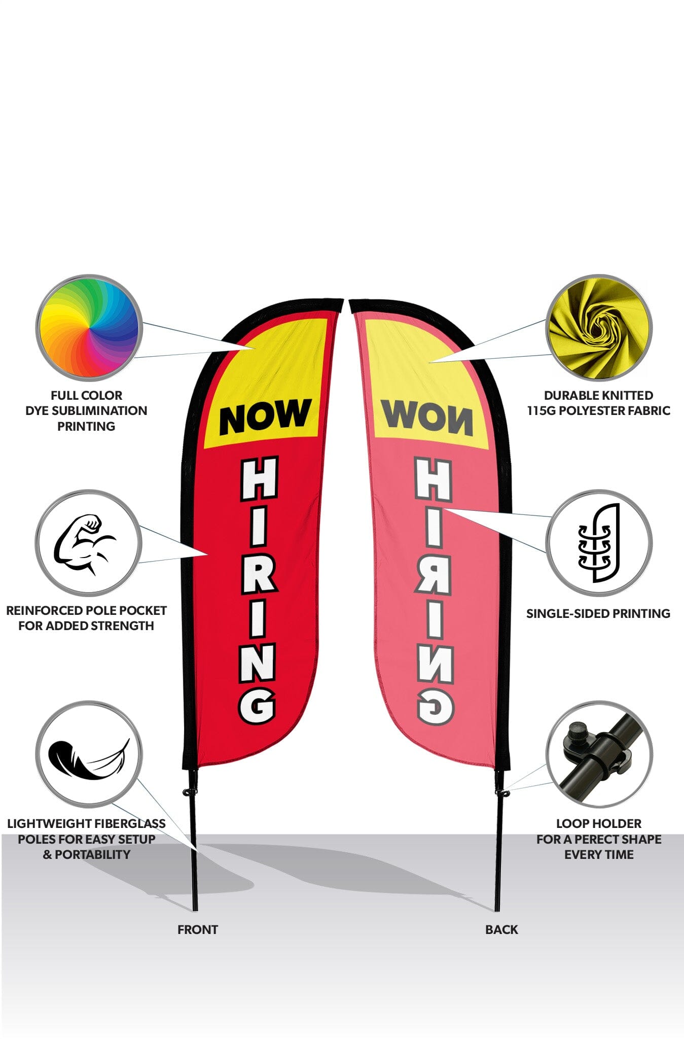 LookOurWay is proud to now offer a special 2-Pack bundle of our best selling Feather Flags. The iconic Now Hiring Feather Flag is an effective outdoor advertising tool that is guaranteed to attract potential hires to your store or business. The vibrant colors show all potential employees that you mean business. Bundle and save with this easy to use, easy to instal feather flag pole set.