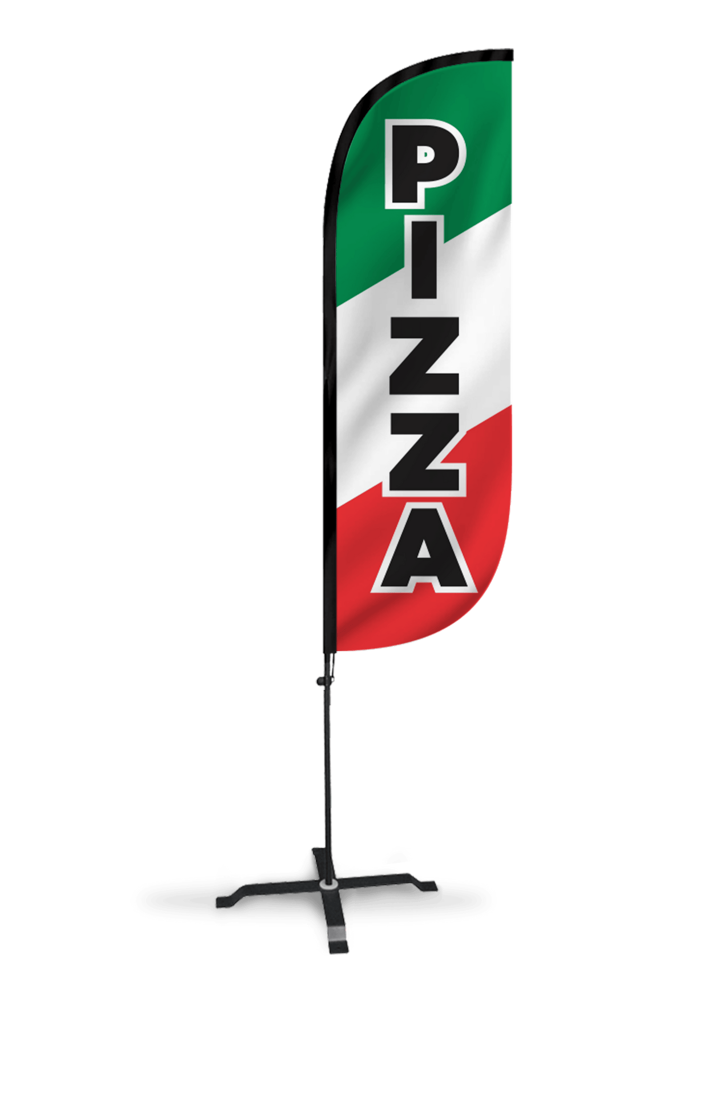 Affordable, vibrant, and built to last—feather flags are a proven way to boost visibility and sales. Order today and let the world know where to find the best pizza in town!