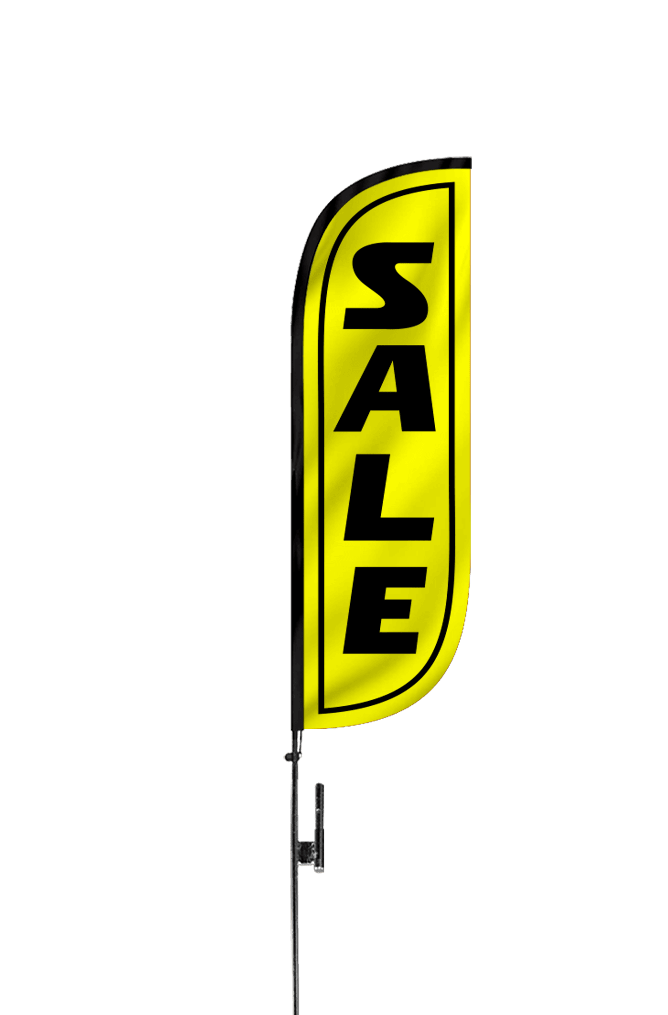 Our Sale Feather Flag is an excellent tool to bring customers into your store. If you're having a hard time showing potential customers that you have a sale going on, this flag will be the perfect fit for your business. Feather flag banners are cost-effective and simple to install. You will love the sale advertising feather flags from LookOurWay. Our high-quality flags stand up to outdoor weather conditions and look fantastic waving outside your business. Their professional presentation tells potential customers you care about your appearance.