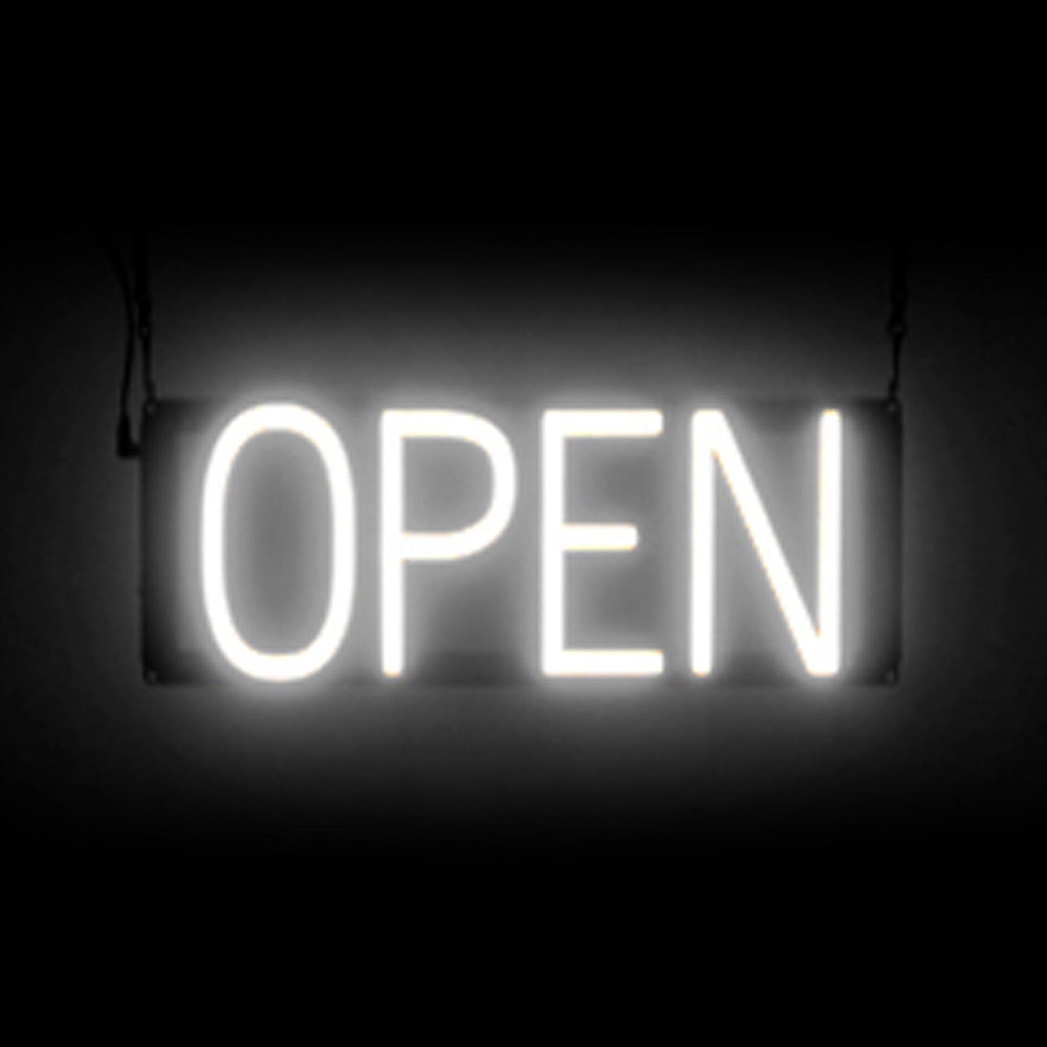 What's Included: Open signs come in sets of individually packaged white LED characters for convenient storage. Also included is a power supply, end caps, chains, and hooks