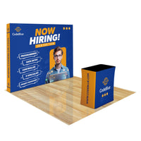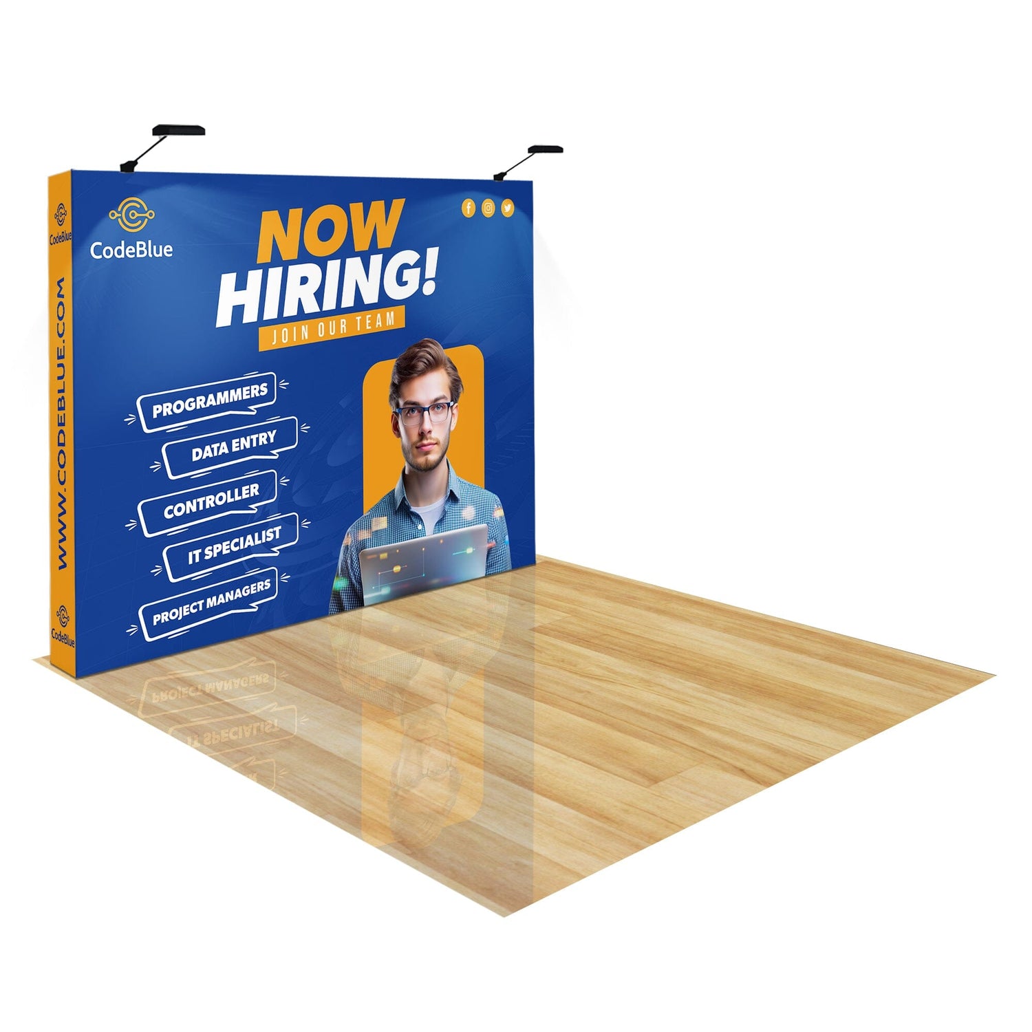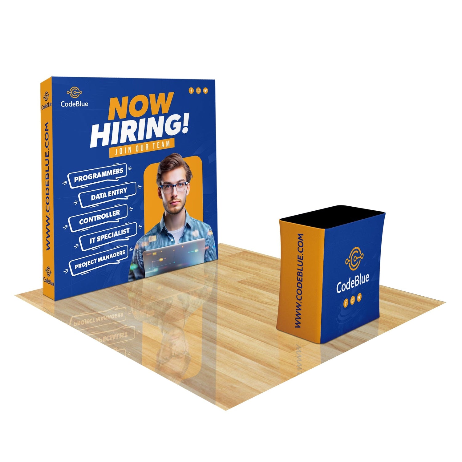 Elevate your event presence with the custom straight pop-Up trade show booth display by LookOurWay! Available in 8ft and 10ft sizes, this popular modular backdrop is designed to make a statement. Its lightweight expandable truss frame ensures easy setup and breakdown, fitting perfectly into our optional Hard Case Podium for hassle-free transport. The hand-tailored cover, crafted from Premium 8.8oz Tension Fabric, boasts vibrant full-color graphics thanks to our superior Dye-Sublimation process. Whether you're at a trade show or hosting an event, this display guarantees your brand shines with a professional flair that truly pops!