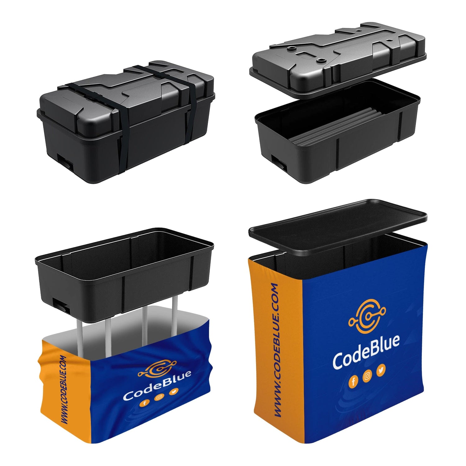 The optional Custom Hard Case Trade Show Podium is truly the star of the show as it doubles as a travel case that is capable of holding your entire booth safely inside. The heavy-duty transport case also features integrated wheels and a handle handle that ensures that transporting your podium is easy and stress-free.