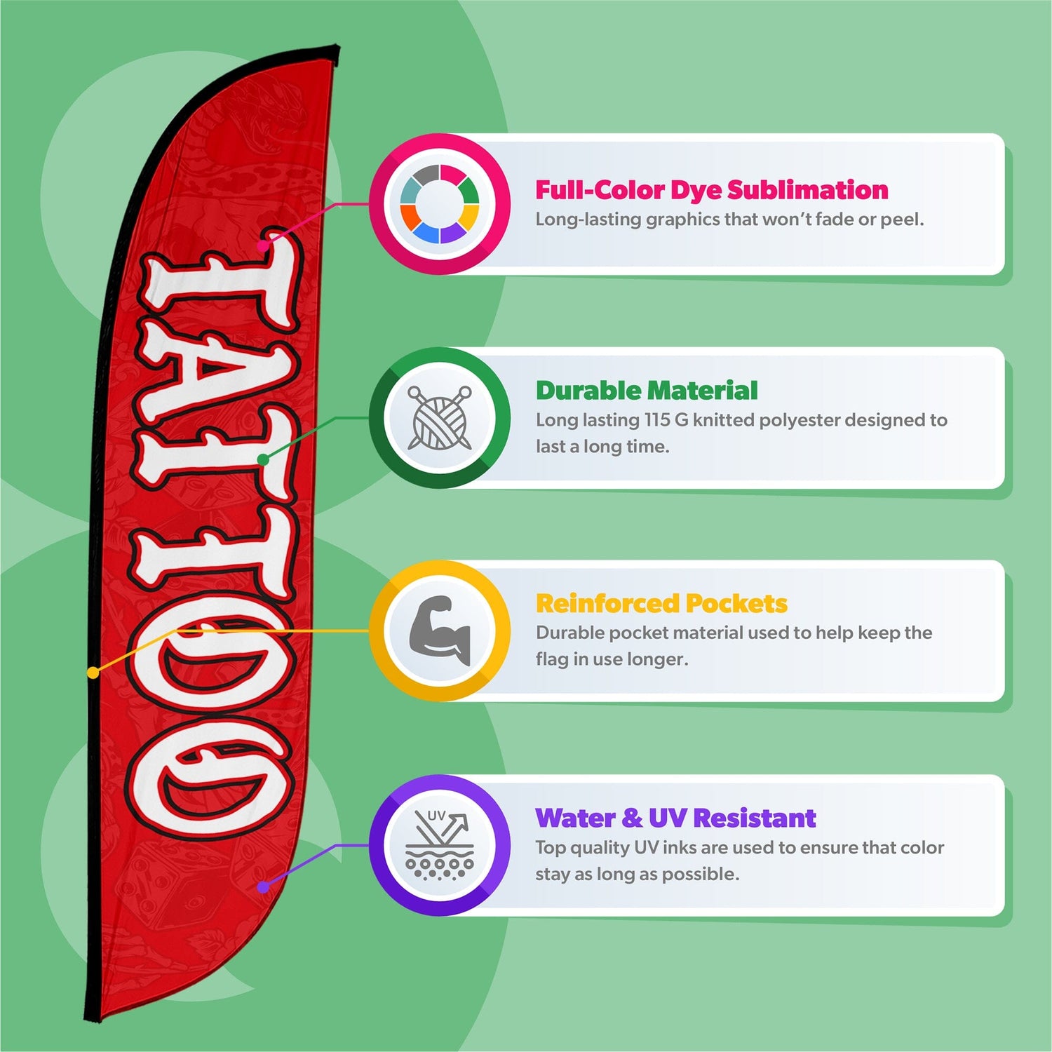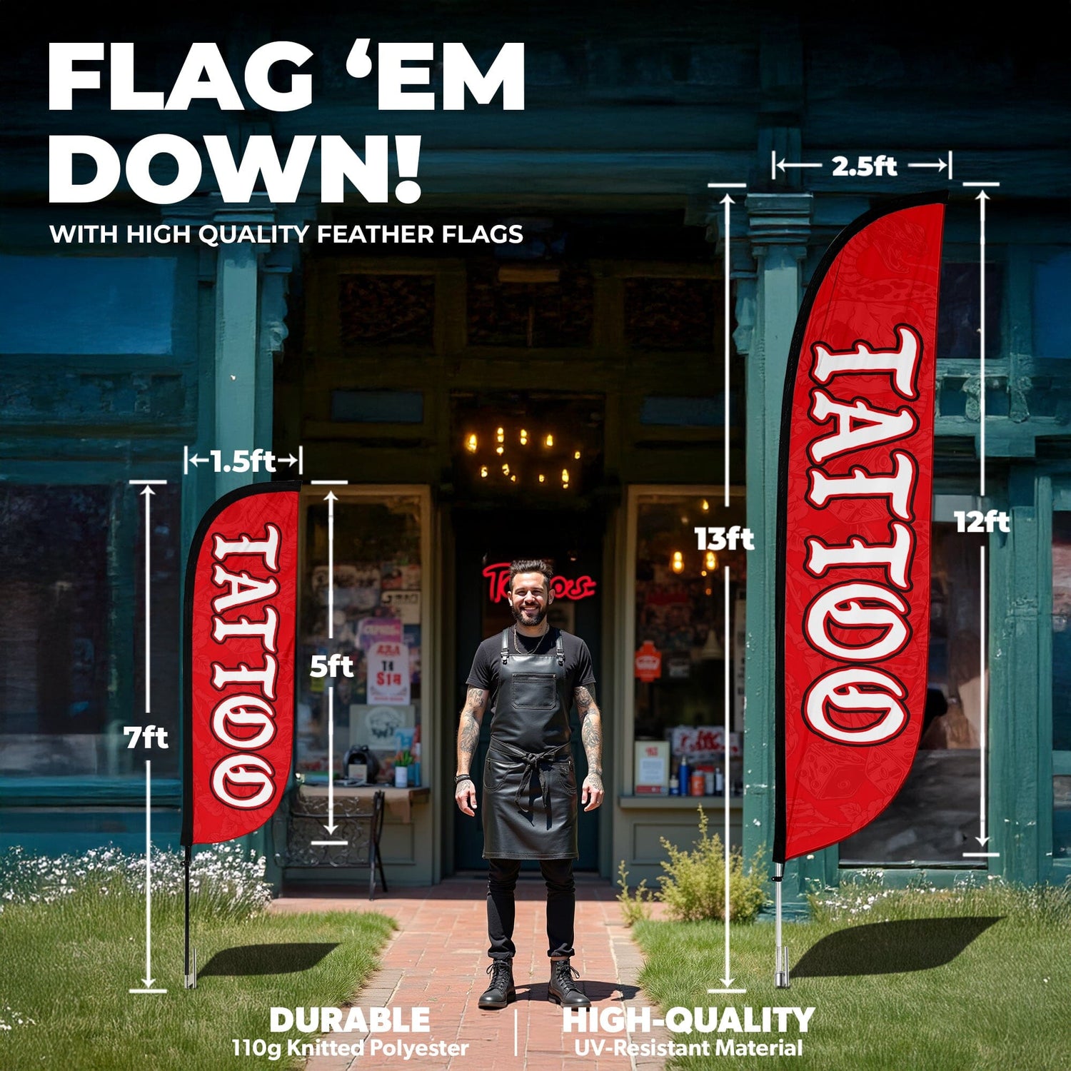 Looking to boost foot traffic and bring in more walk-ins? This eye-catching red feather flag with bold “TATTOO” text is just what your shop needs! With its vibrant color and striking design, it instantly grabs attention and sends a clear message—your studio is open, ready, and inking!