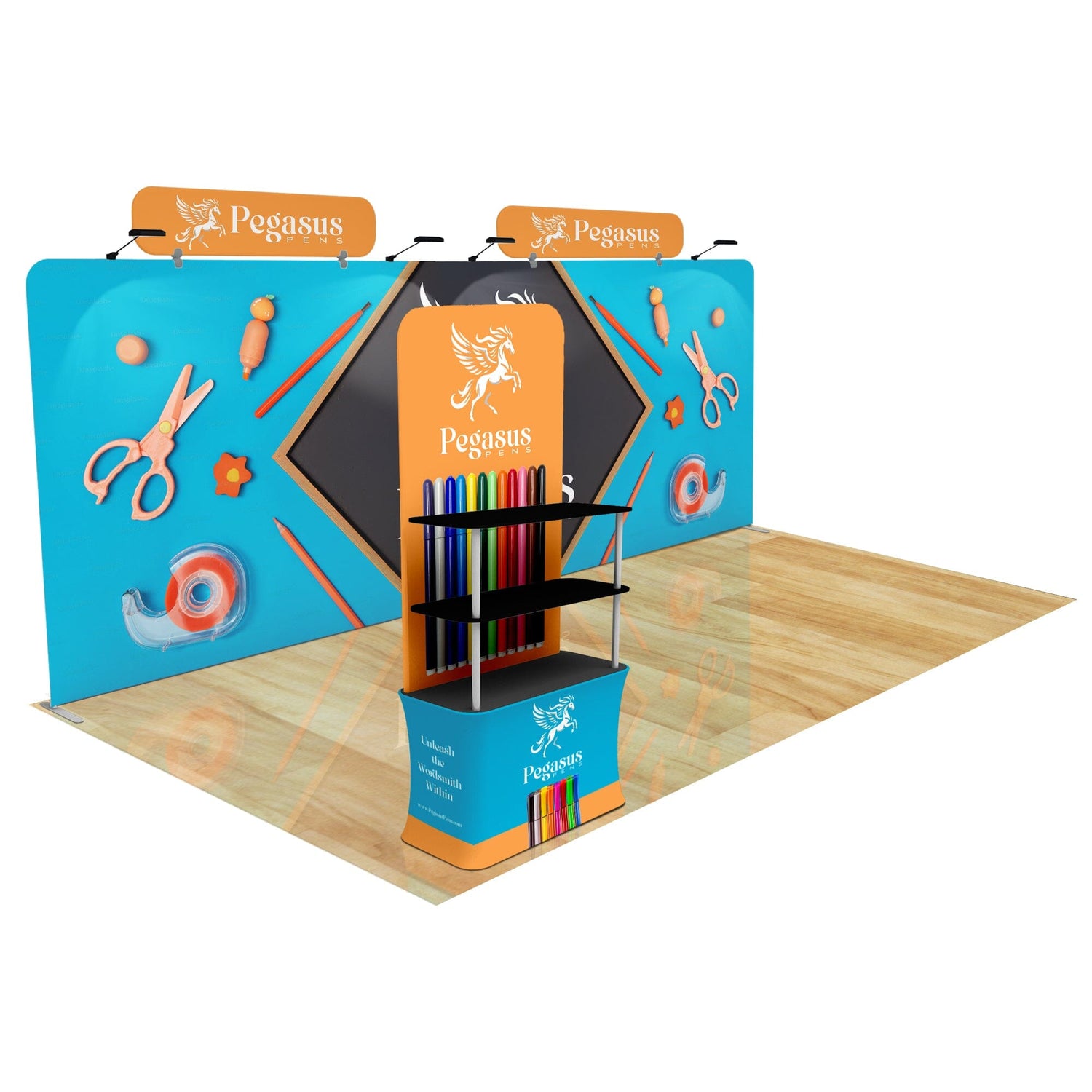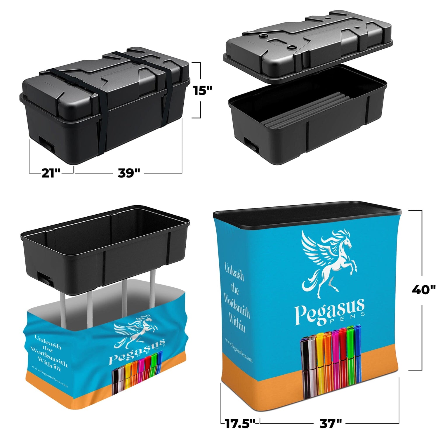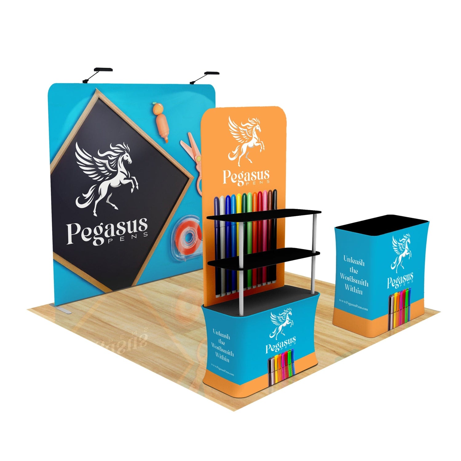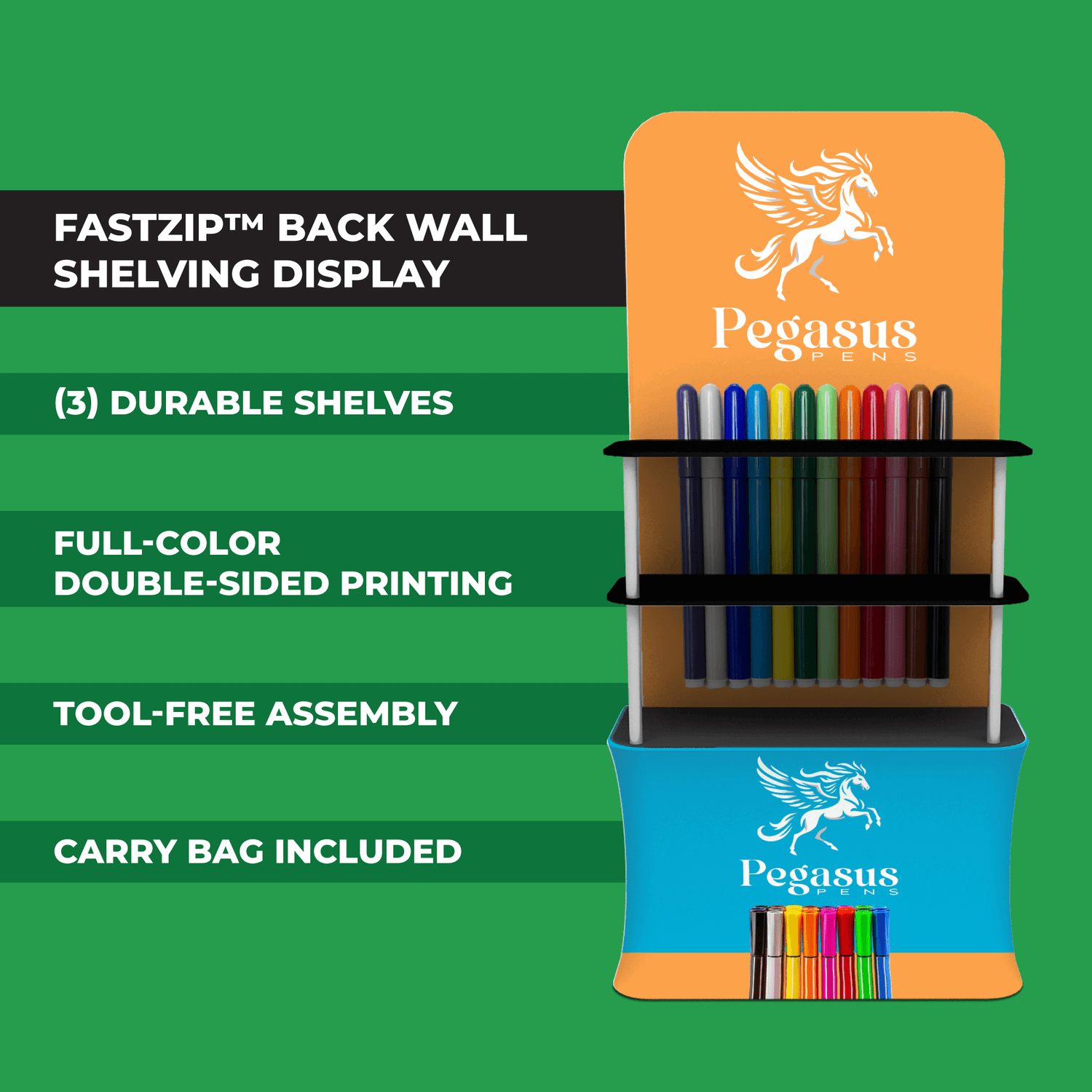 Elevate your trade show game with the Fastzip™ Trade Show Booth Display featuring our innovative Back Wall Shelving Unit! Choose from 8ft, 10ft, or 20ft sizes to perfectly showcase your brand. Our vibrant full-color prints, crafted with premium fabrics and cutting-edge Dye-Sublimation technology, ensure you stand out brilliantly. Each piece is hand-finished for a flawless fit and assembled effortlessly with durable aluminum poles. Plus, our optional Custom Hard Case Trade Show Podium doubles as sleek storage with integrated wheels for stress-free transport. Make every expo unforgettable and let your brand shine in style!