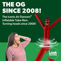 Make your business or event impossible to ignore with the Two-Legged Red Air Dancer® Inflatable Tube Man from LookOurWay! Standing 16ft or 24ft tall, this bold, double-legged tube man is one of the largest on the market, delivering eye-catching motion and high-energy fun that draws crowds instantly.